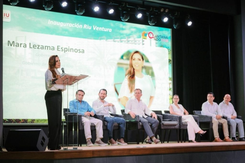 Cancún, Quintana Roo, 9 de diciembre de 2025.- Al participar en la inauguración del nuevo Hotel Riu Ventura en Cancún, la gobernadora Mara Lezama Espinosa expresó que detrás de Quintana Roo hay un gran grupo de empresarias y empresarios que han podido ver aquí más que un destino turístico, un espacio de construcción social, de desarrollo humano y de prosperidad compartida.