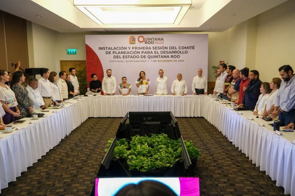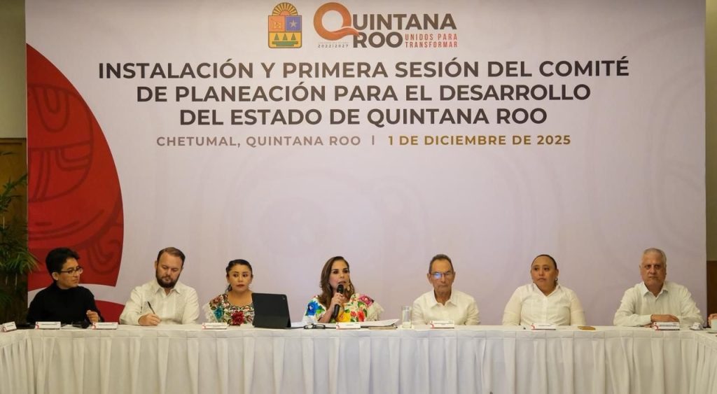 Chetumal, Quintana Roo, 1 de diciembre de 2025.- La gobernadora Mara Lezama Espinosa encabezó la instalación y la Primera Sesión Ordinaria 2025 del Comité de Planeación para el Desarrollo del Estado de Quintana Roo (COPLADE), donde se presentó la actualización del Plan Estatal de Desarrollo 2023–2027 para su revisión y aprobación por parte de las y los integrantes del Comité.