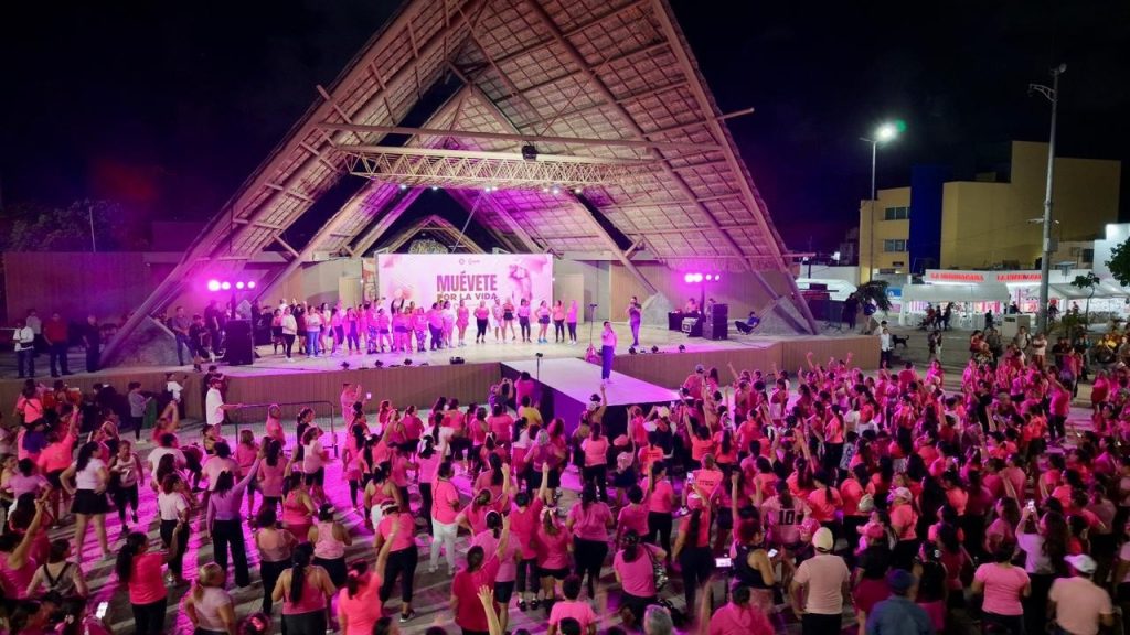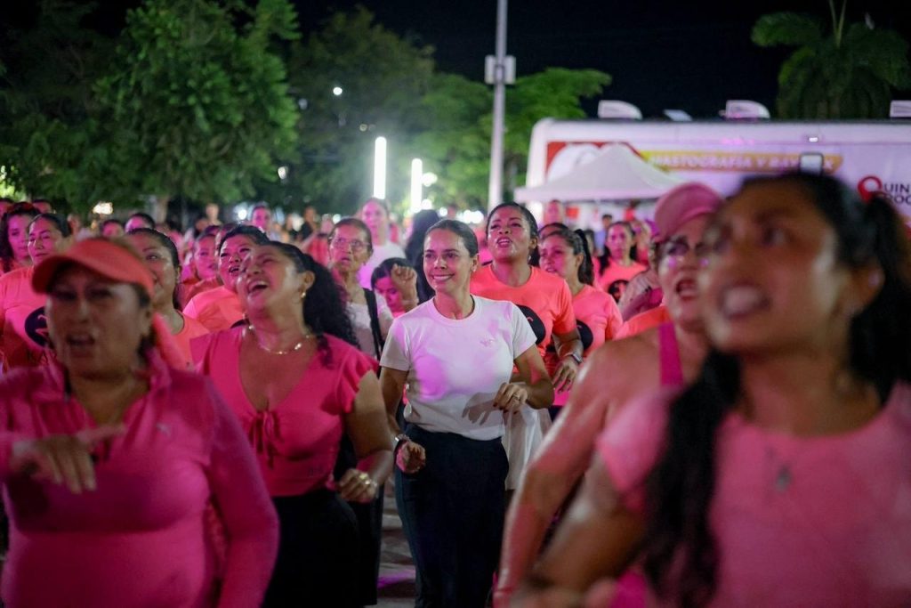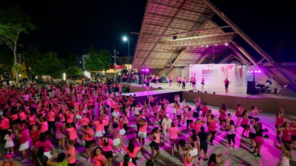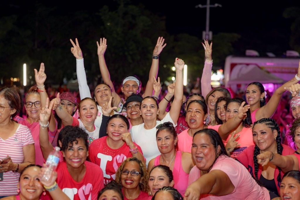 Cancún, Quintana Roo, 21 de octubre de 2025.- El rosa se apoderó del Parque de las Palapas en una tarde llena de buena vibra, música, pasos de zumba y sonrisas, donde la Presidenta Municipal, Ana Paty Peralta, se sumó con entusiasmo a la iniciativa “Muévete por la vida”, impulsada por el Instituto Municipal de la Mujer (IMM) en el marco de Octubre Rosa, mes dedicado a crear conciencia sobre la prevención del cáncer de mama.