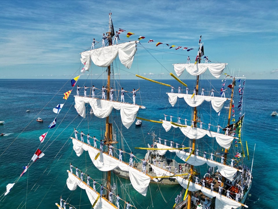 Cozumel, Quintana Roo, 2 de noviembre de 2025.- Desde el muelle Punta Langosta, en la isla de Cozumel, se recibió con orgullo el arribo del majestuoso Buque Escuela “Cuauhtémoc”, emblema de la Armada de México. La embarcación, conocida como “El Caballero de los Mares”, forma parte de las actividades de instrucción naval para los cadetes de la Heroica Escuela Naval Militar, quienes realizan prácticas de navegación en distintos puertos nacionales e internacionales.
