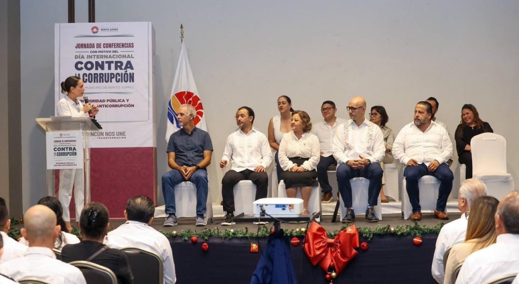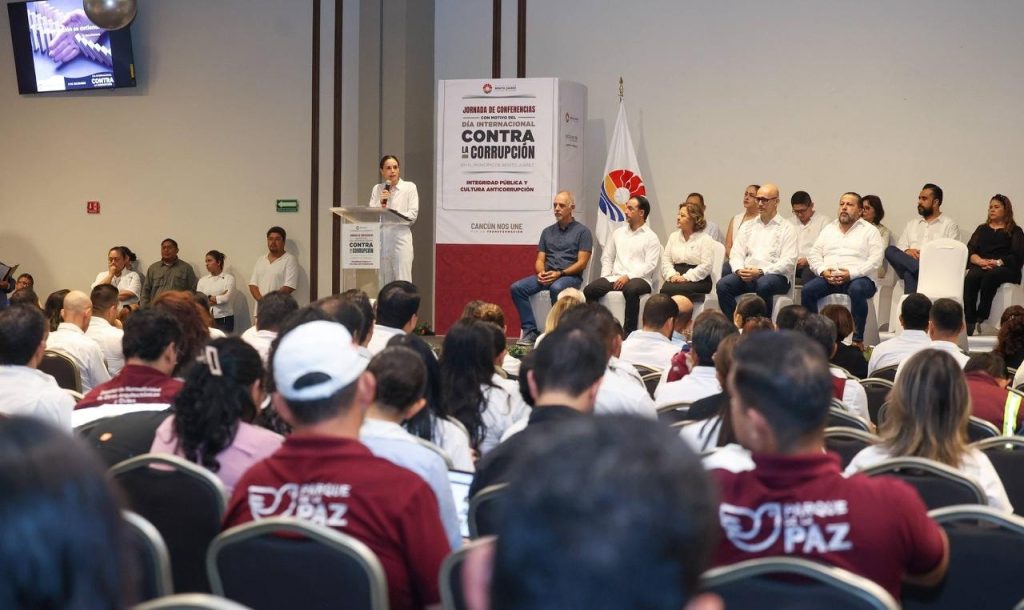 Cancún, Quintana Roo, 12 de diciembre de 2025.- En el marco del Día Internacional Anticorrupción, que se conmemora cada 9 de diciembre, la Presidenta Municipal, Ana Paty Peralta, encabezó el evento “Integridad Pública y Cultura Anticorrupción”, una jornada de conferencias dirigida a más de 200 servidores públicos, para fortalecer la honestidad, la transparencia y el servicio responsable a la ciudadanía.