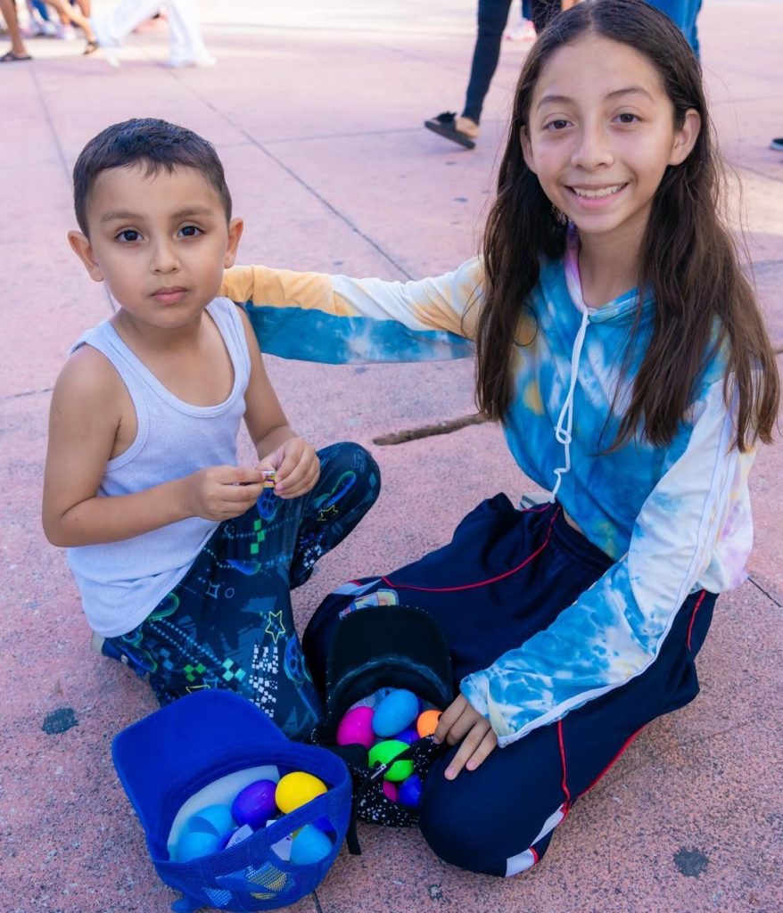 Asimismo, el DIF organizó un rally con cinco estaciones, donde las niñas y niños realizaron dinámicas como transportar globos de colores, buscaminas, memorama con conos, ensarta la pelota y atrapa la pelota. Los huevos de Pascua contenían mensajes de valores y dulces, mientras que quienes encontraron los huevos de oro recibieron un premio especial. La tarde se llenó de alegría con pinta caritas, show de payasos y la ambientación a cargo de los talleres de música de la subdirección de Cultura; además, se proyectó la película “Hop: Rebelde sin Pascua”.