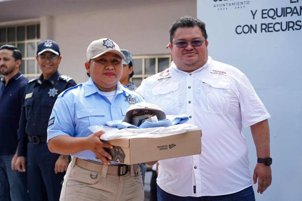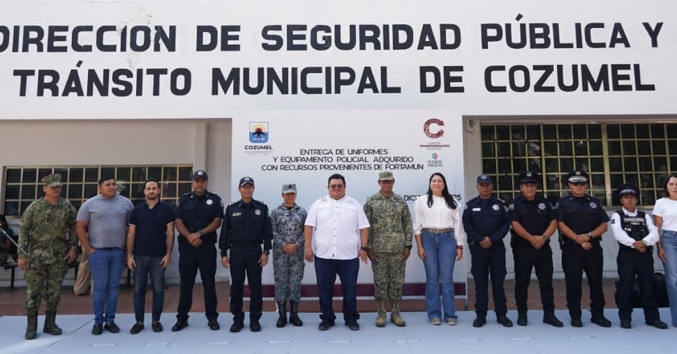 Cozumel, Quintana Roo, 12 de diciembre de 2025.- En cumplimiento al compromiso asumido para mejorar las condiciones laborales y dignificar al cuerpo policial, el presidente municipal, José Luis Chacón Méndez, realizó la entrega de uniformes y equipamiento policial adquiridos con recursos provenientes del FORTAMUN (Fondo de Aportaciones para el Fortalecimiento de los Municipios y de las Demarcaciones Territoriales del Distrito Federal), como parte de las acciones permanentes para fortalecer la seguridad en la isla.