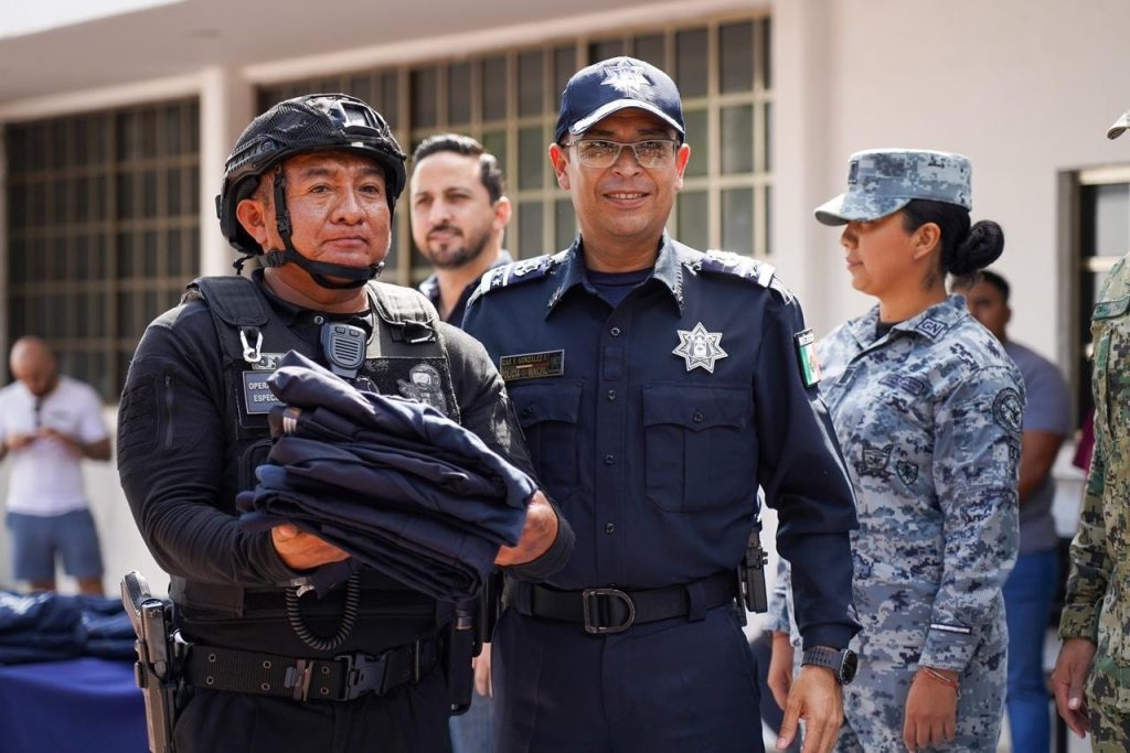 Durante el evento se dotó al personal de Seguridad Pública con 30 uniformes completos para la Policía Turística, que incluyen botas tácticas, camisola, gorra y cinturón, así como 15 uniformes para el Grupo Táctico Operativo, consistentes en pantalón y playera táctica. Además, se entregaron 15 juegos de coderas y rodilleras tácticas, 53 candados de mano, 194 impermeables y 194 chamarras, reforzando la protección del personal en el desempeño de sus funciones. Asimismo, se incorporó equipamiento especializado con 10 cascos antimotín, 10 equipos antimotín y 10 escudos antimotín, además de 15 cascos para motocicleta, 15 juegos de rodilleras y coderas para moto y 15 pares de guantes para moto, con el objetivo de fortalecer la capacidad operativa y la seguridad de las y los elementos policiales.