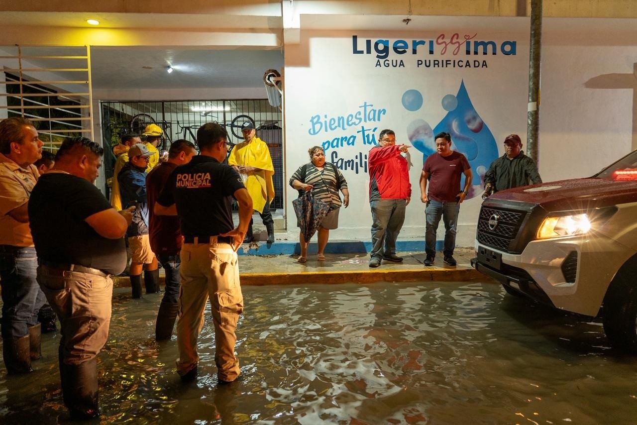 En compañía del director de Protección Civil, Alfredo Arellano Villaseñor, y del director de Obras Públicas, Andrés Catzin Gómez, el presidente recorrió diversas colonias de la isla para verificar personalmente las labores de limpieza que realizan las brigadas como parte del operativo de apoyo por tormenta.