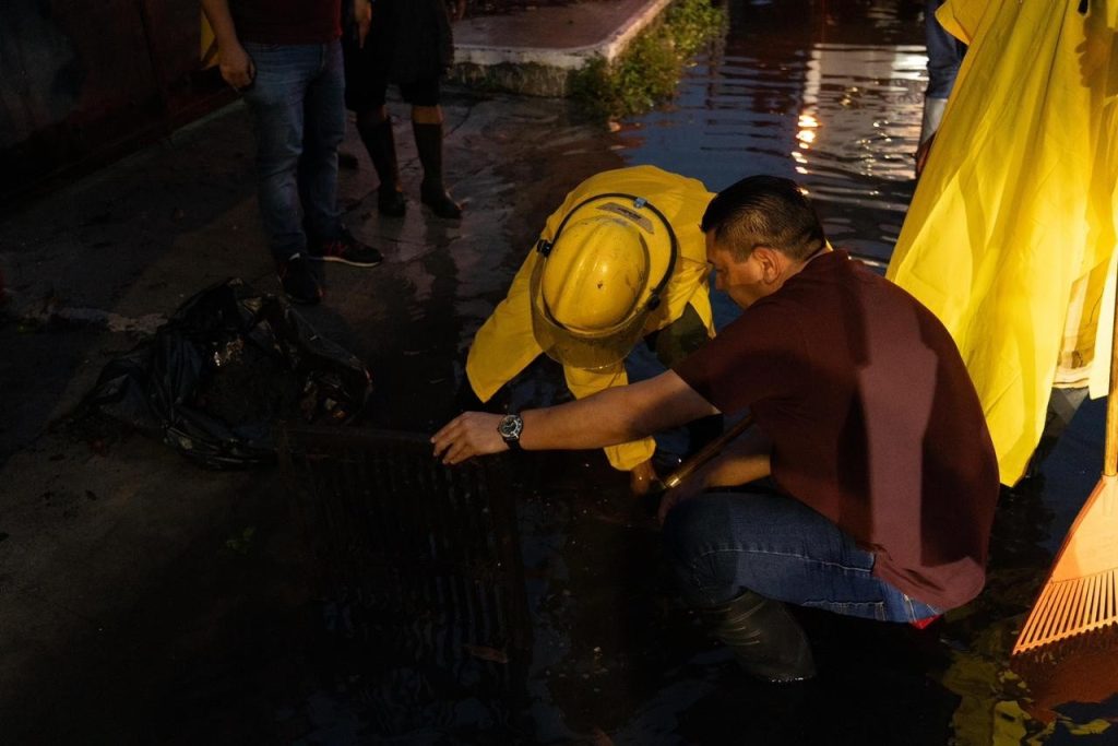 Cozumel, Quintana Roo, 2 de abril de 2026. – Como medida preventiva ante las lluvias registradas en las últimas horas, el presidente municipal, José Luis Chacón, acudió a las zonas propensas a inundaciones donde supervisó el trabajo de limpieza de rejillas de los pozos de absorción, con el objetivo de facilitar el flujo del agua y permitir el tránsito seguro de la comunidad.