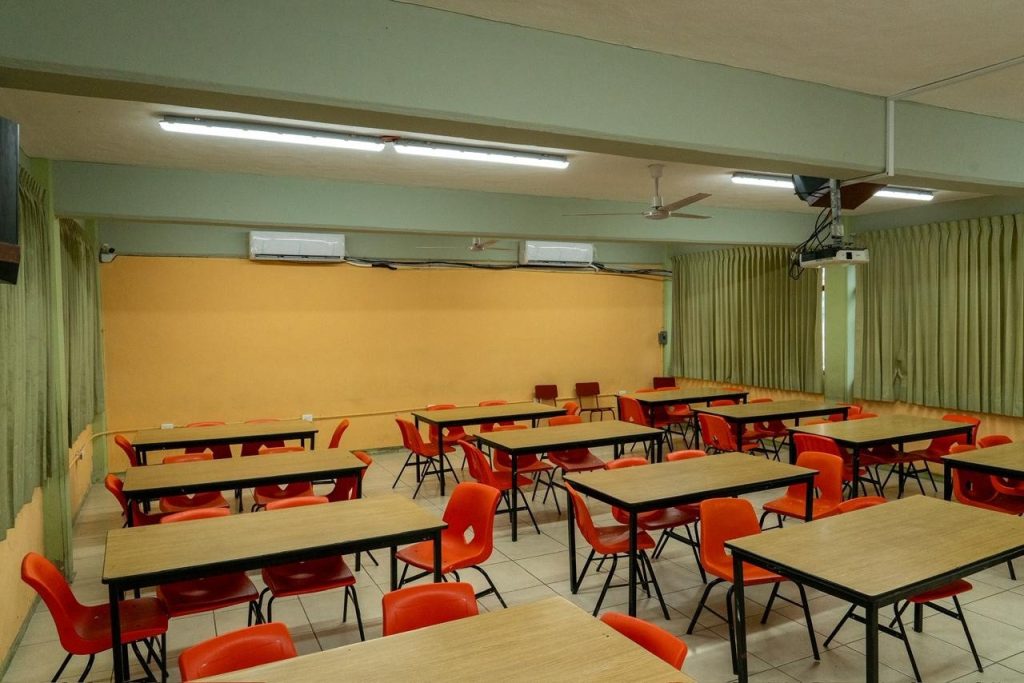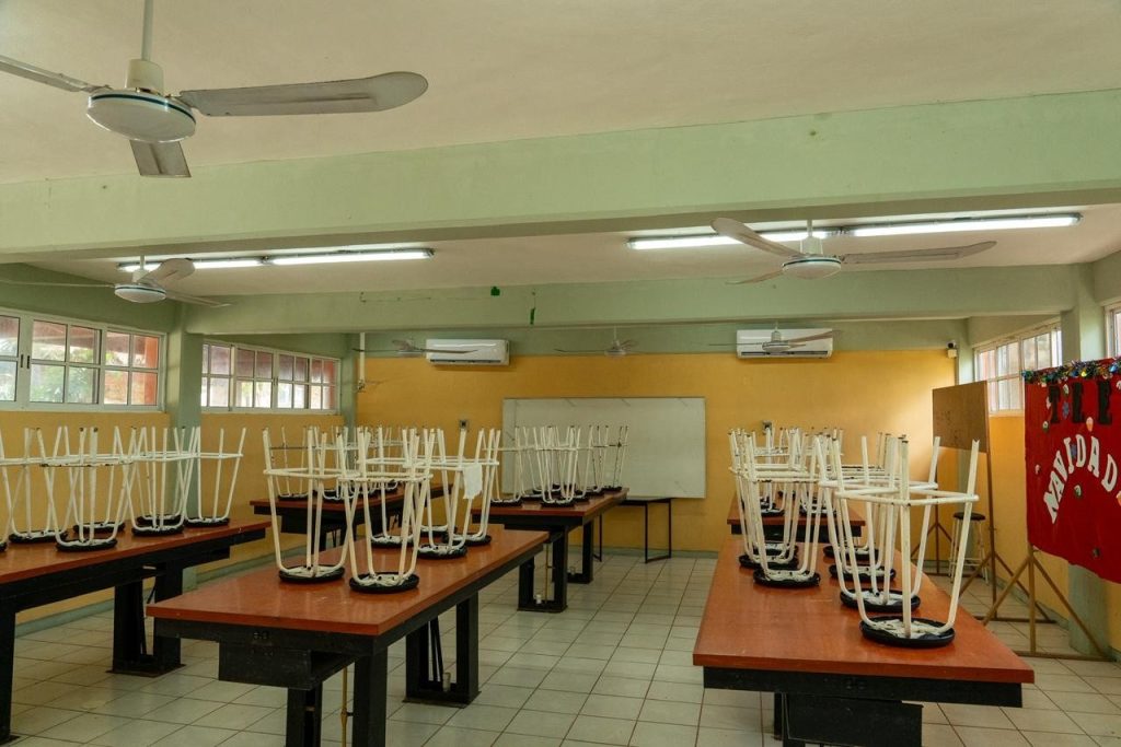 Como parte de estos trabajos, se llevó a cabo la instalación de la subestación eléctrica con el propósito de asegurar el correcto funcionamiento de los 40 equipos de aire acondicionado colocados en la escuela, mejorando así las condiciones para el aprendizaje de las y los estudiantes.