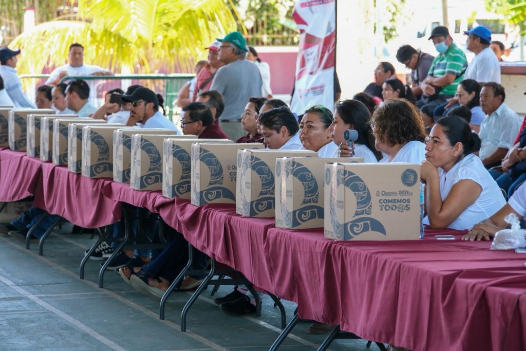 “Somos un gobierno diferente, que combate la corrupción, que trabaja diferente a través del Nuevo Acuerdo por el Bienestar y Desarrollo de Quintana Roo que hace políticas públicas para abatir rezagos que existieron por muchos años, como el alimentario”, explicó la Gobernadora ante los beneficiarios que empezaron recibir sus paquetes de alimentos.