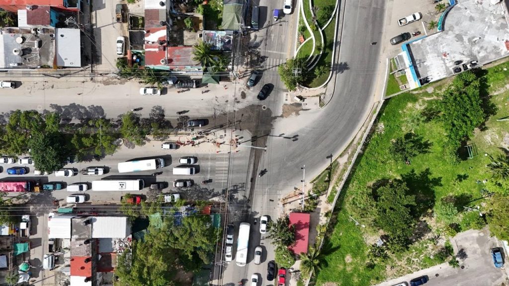 Cancún, Quintana Roo, 17 de diciembre de 2025.- Como parte de sus recorridos permanentes por la ciudad y de supervisión de varias obras en proceso en Benito Juárez, la Presidenta Municipal, Ana Paty Peralta, supervisó el avance del cruce seguro que se habilita en la Avenida Lak´in con Avenida Miguel Hidalgo, conocida coloquialmente como “Ruta 5”, que forma parte del proyecto de 12 intersecciones que son intervenidas para beneficio de peatones y automovilistas.
