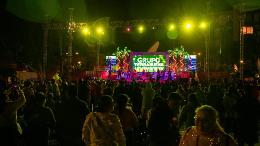 Con gran energía y ritmo, el grupo Yerbabuena cerró la velada con un concierto que puso a bailar a chicos y a grandes, con una mezcla ecléctica de géneros populares ideales para la fiesta, que incluyó pop, rock, cumbia, salsa, música de los años setenta y reguetón, sellando así una noche popular inolvidable.