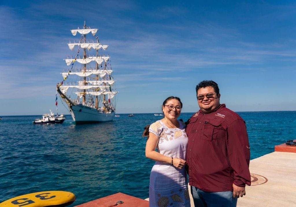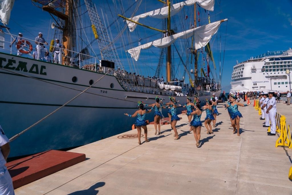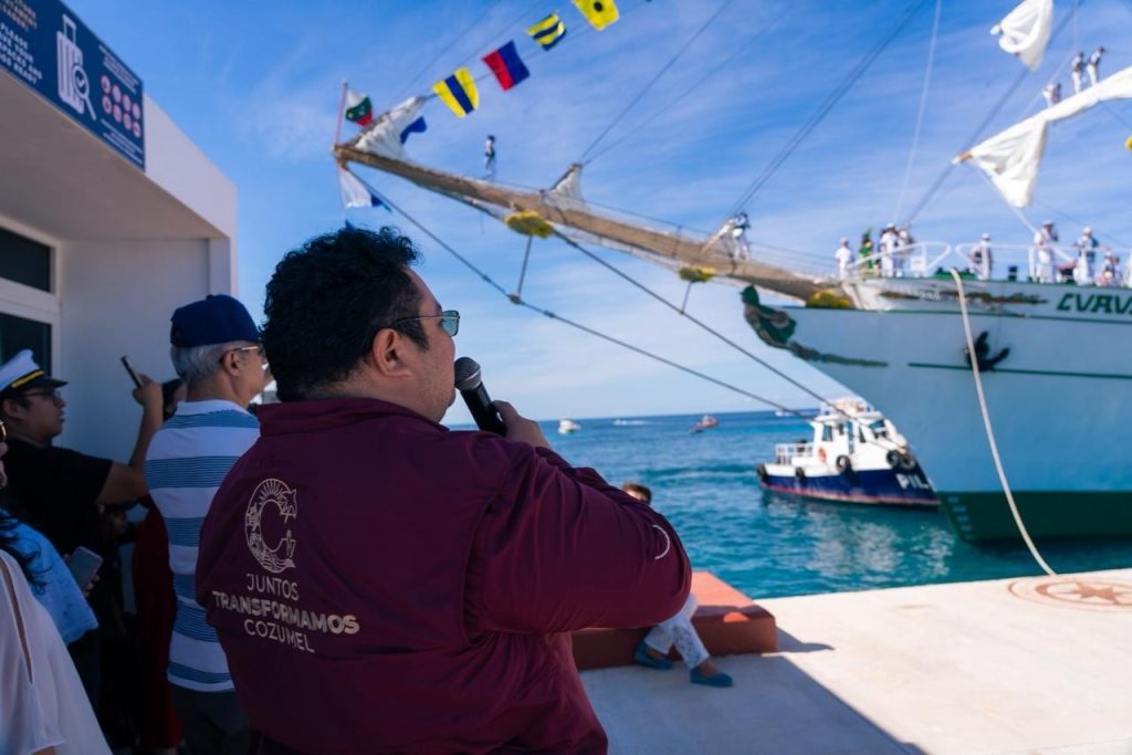 Con un ambiente festivo en el malecón, entre música, banderas ondeantes y familias reunidas, la comunidad cozumeleña dio la bienvenida a la tripulación del Cuauhtémoc, que arriba a este puerto como su primer destino tras reanudar su travesía internacional.