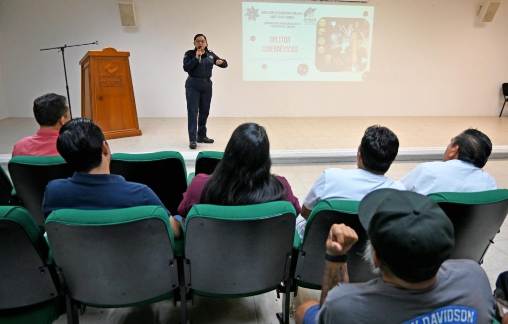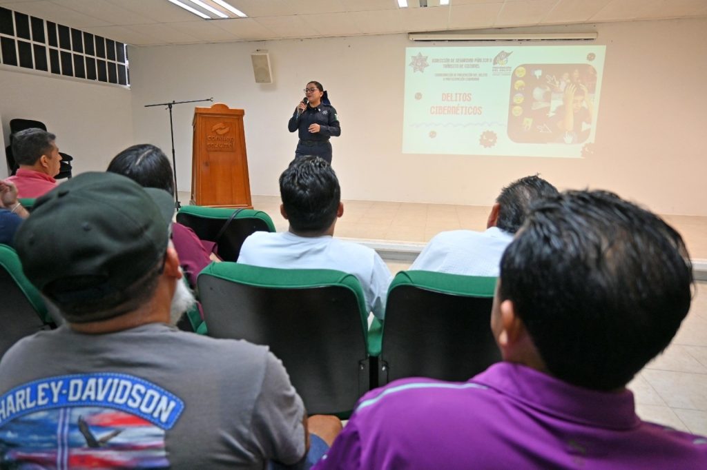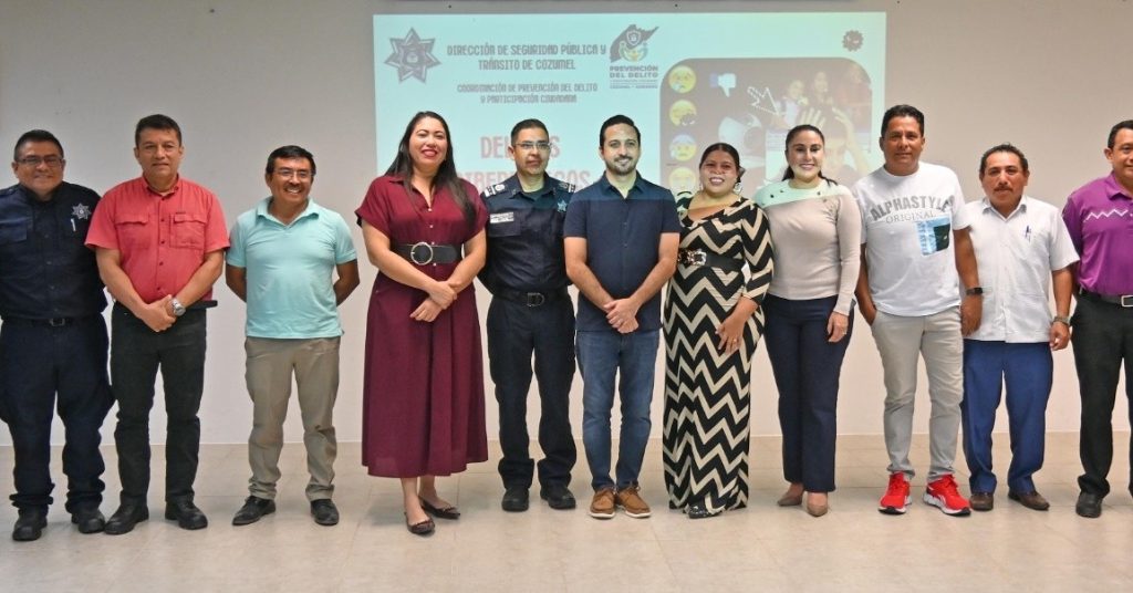 Cozumel, Quintana Roo, 11 de marzo de 2026.- Con el objetivo de fortalecer la cultura de la prevención y el uso responsable de las tecnologías digitales, la Dirección de Seguridad Pública y Tránsito de Cozumel, a través de la Coordinación de Prevención del Delito y Participación Ciudadana, impartió la plática “Delitos Cibernéticos” dirigida a líderes sociales y representantes de asociaciones religiosas del municipio.