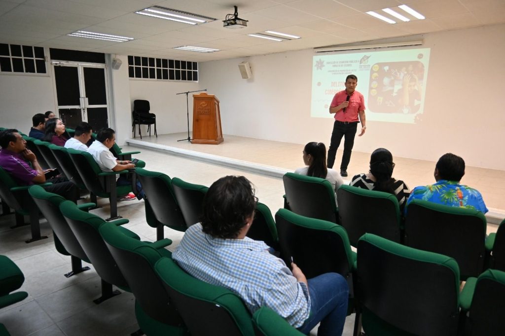 La actividad se llevó a cabo en el auditorio del CONALEP, contando con la presencia del Director de Seguridad Pública y Tránsito, Capitán Corbeta I.M.P. Fernando González Felipe; la Secretaria General del Ayuntamiento, Mtra. Margarita Barrios; el Primer Regidor, Alejandro Mattar Pérez; la Síndico Municipal, Daniela Ayala Blanco; así como el Coordinador de Prevención del Delito y Participación Ciudadana, Alejandro Moreno Peña, acompañados por el Policía Segundo Francisco Javier Noh Villanueva, la Policía Ileana Hernández Martín y la auxiliar administrativa Ingrid Achach.