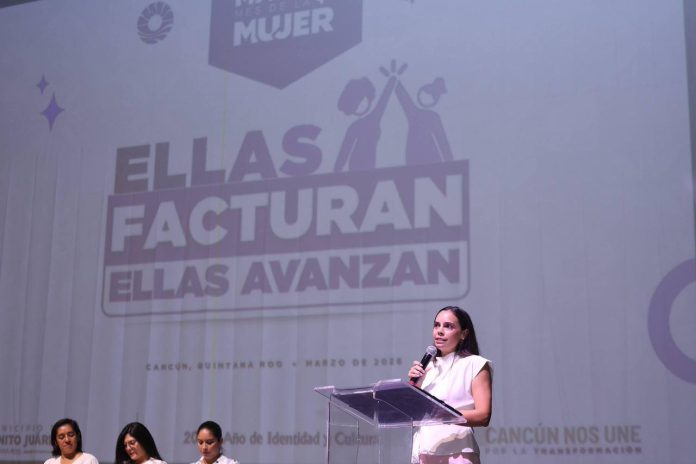 Cancún, Quintana Roo, 24 de marzo de 2026.- “Detrás de cada una de ustedes, hay una historia de esfuerzo, de constancia. Cuando una mujer avanza, no avanza sola, avanzamos todas y también avanza su familia y también una comunidad entera”, afirmó la Presidenta Municipal, Ana Paty Peralta, al encabezar la presentación de la campaña “Ellas Facturan Avanzan”.