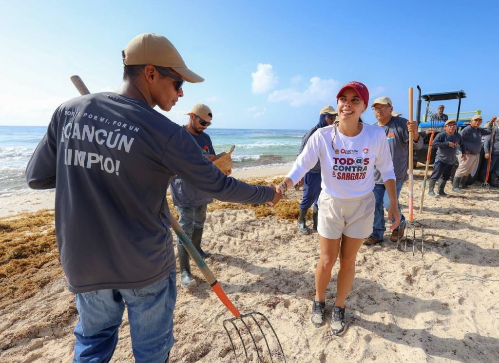 Cancún, Quintana Roo, 2 de febrero de 2026.- Gracias a la suma de esfuerzos entre personal de las direcciones de Servicios Públicos y Zona Federal Marítimo Terrestre (Zofemat), el Ayuntamiento de Benito Juárez suma 16 mil 654.48 toneladas de sargazo retirado en las jornadas de limpieza de playas permanente a lo largo del 2025, tarea que se mantiene todos los días, afirmó la Presidenta Municipal, Ana Paty Peralta.