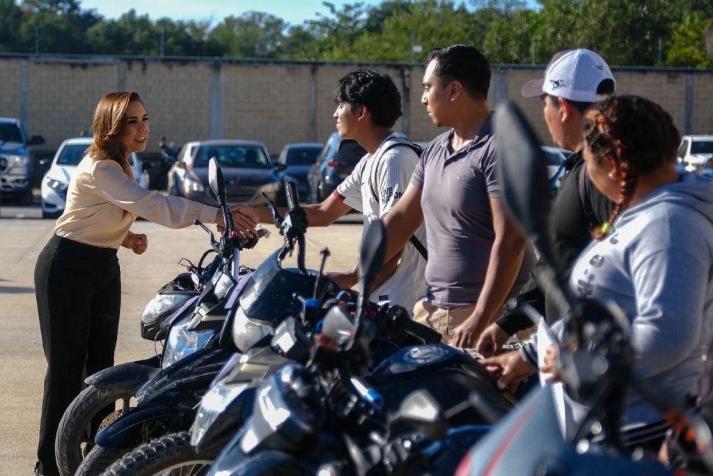 Cancún, Quintana Roo, 17 de diciembre de 2025.- Durante una entrega más a sus legítimos dueños de 8 motocicletas y 1 mototaxi recuperados durante inspecciones en diversos filtros de seguridad, la gobernadora Mara Lezama Espinosa informó que se les apoyará para poner en orden sus documentos, puedan circular y hacer el reemplacado 2026 sin problemas.