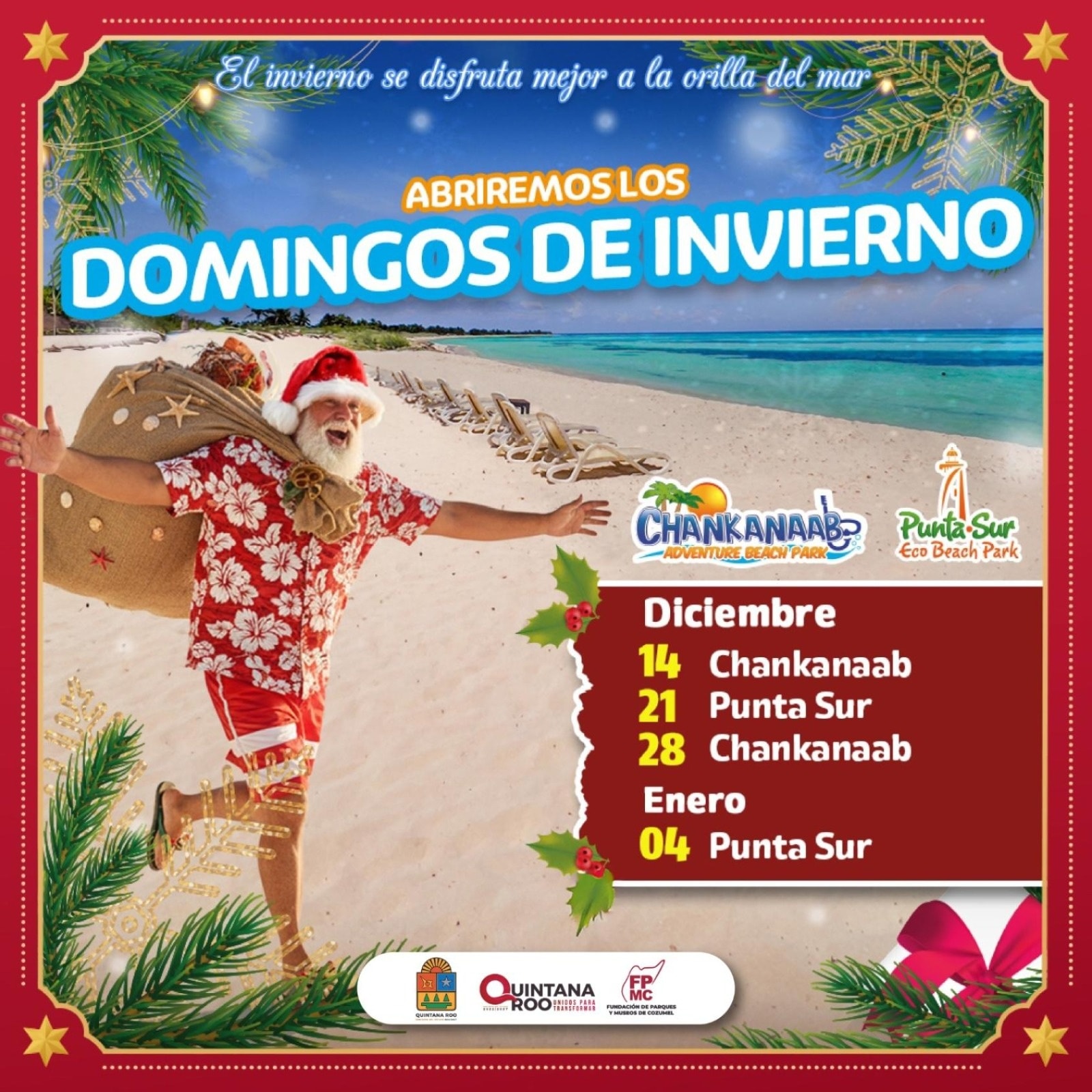 Cozumel, Quintana Roo, 8 de diciembre de 2025.- Con el objetivo de ofrecer más alternativas para que las y los vacacionistas disfruten un periodo de descanso lleno de diversión, contacto con la naturaleza y convivencia, la Fundación de Parques y Museos de Cozumel (FPMC) anunció la campaña “Domingos de Invierno”, una iniciativa que permitirá a residentes y turistas visitar el Parque Natural Chankanaab y el Parque Ecoturístico Punta Sur durante los domingos de invierno.
