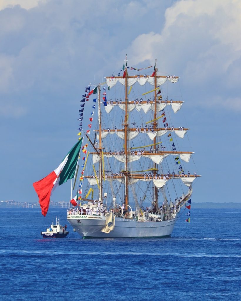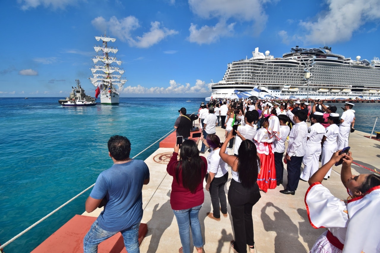 El Buque Escuela Cuauhtémoc se despide de Cozumel entre aplausos y algarabía