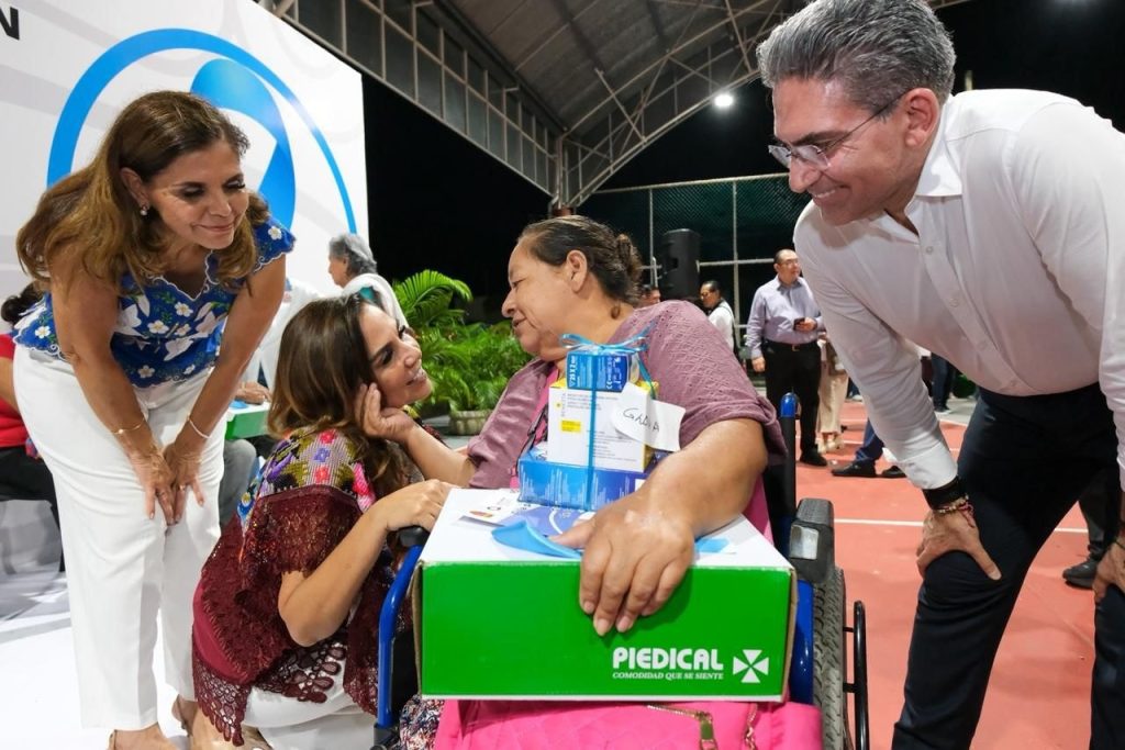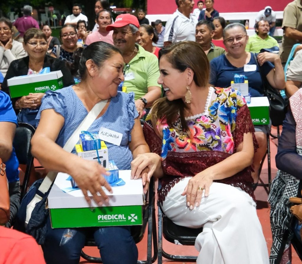 Chetumal, Quintana Roo, 14 de diciembre de 2025.- Durante un evento realizado en territorio, en el Parque del Queso, la gobernadora Mara Lezama Espinosa entregó 122 kits de prevención de pie diabético, que incluye zapato ortopédico y plantilla ortopédica, así como 157 kits de control de diabetes e hipertensión, con glucómetro digital, tiras reactivas y baumanómetro digital, en coordinación con la Beneficencia Pública.