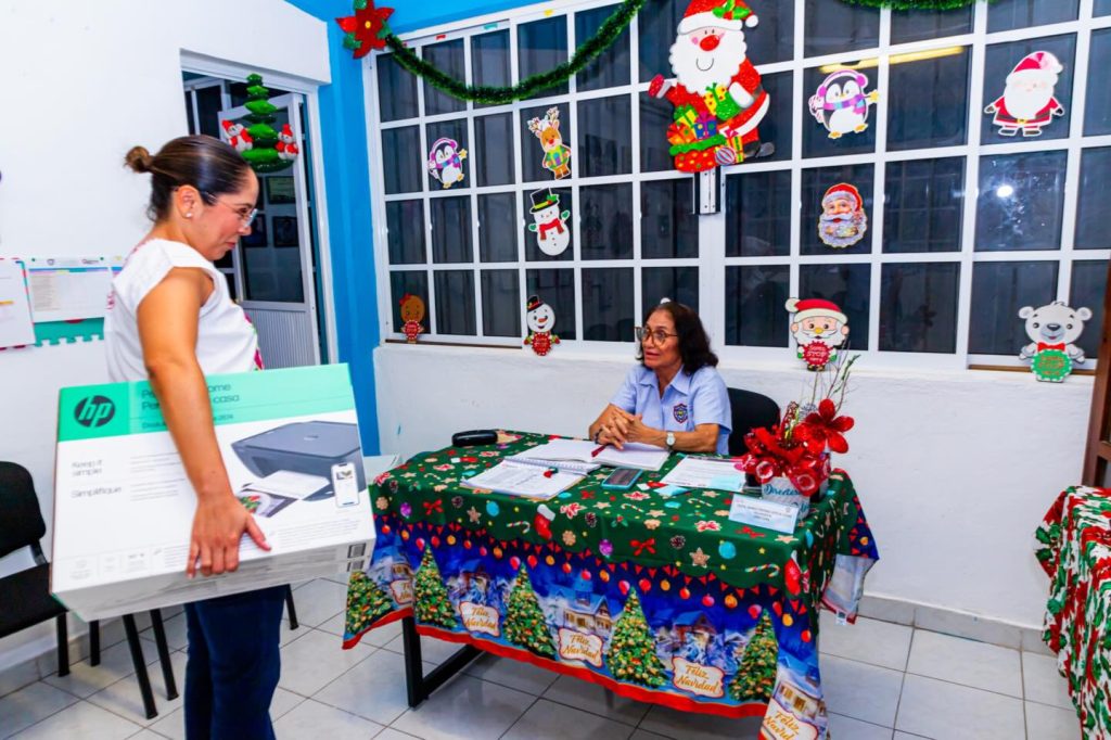 Cozumel, Quintana Roo, 4 de diciembre de 2025.- En el marco del Día Internacional de las Personas con Discapacidad, la segunda regidora del Ayuntamiento de Cozumel, María Fernanda Vargas González, realizó la entrega de una impresora al aula USAER de la escuela primaria Benito Juárez, con el propósito de apoyar las tareas diarias de maestras y maestros y fortalecer el acompañamiento que reciben las y los estudiantes.