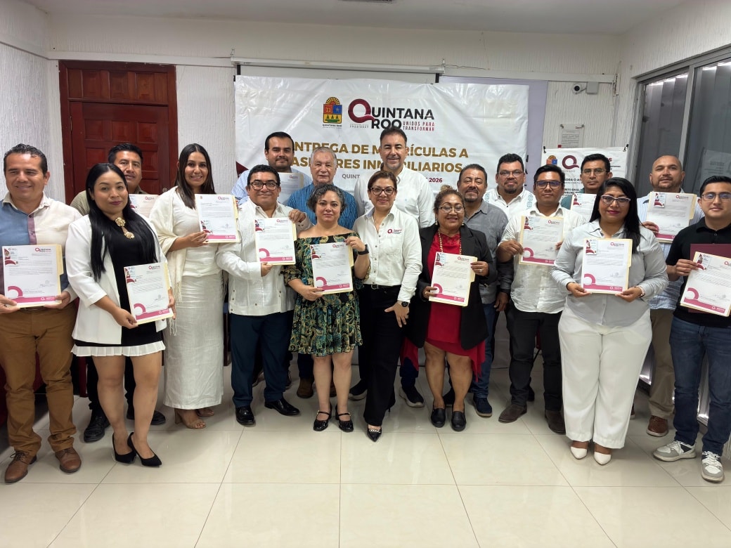 Entrega SEDETUS matrículas a profesionales inmobiliarios en Chetumal