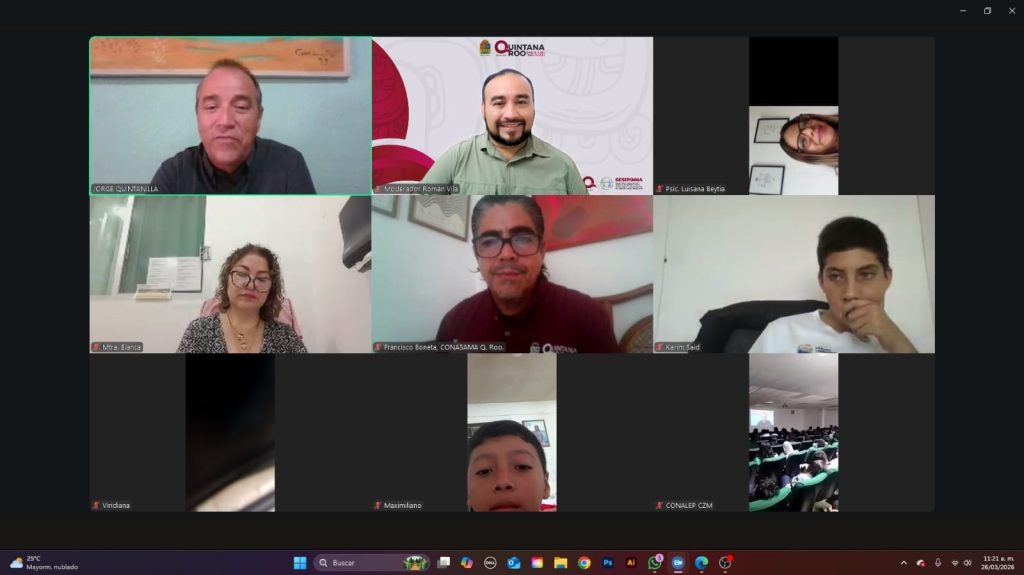 Chetumal, Quintana Roo, 30 de marzo de 2026.- La Secretaría Ejecutiva del Sistema de Protección de Niñas, Niños y Adolescentes (SIPINNA) reunió a representantes juveniles y especialistas en el conversatorio virtual “Niñez y adolescencia sin riesgo”, un espacio de diálogo intergeneracional donde compartieron experiencias, resolvieron dudas y recibieron orientación sobre cómo cuidar su salud mental y prevenir adicciones.