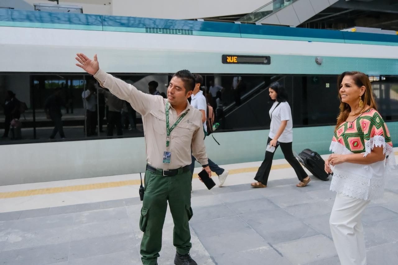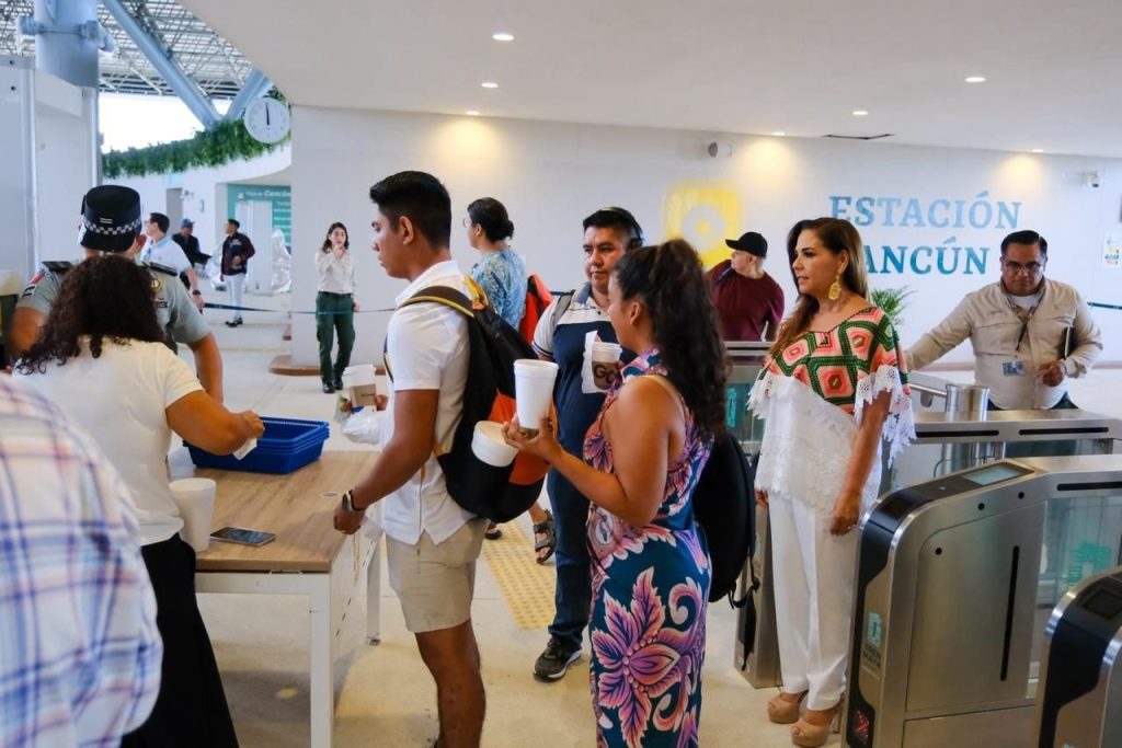 Desde la estación de Cancún, la gobernadora Mara Lezama Espinosa, invitó a la ciudadanía y a visitantes nacionales y extranjeros a subirse al tren y disfrutar de una experiencia de viaje cómoda, segura y accesible.