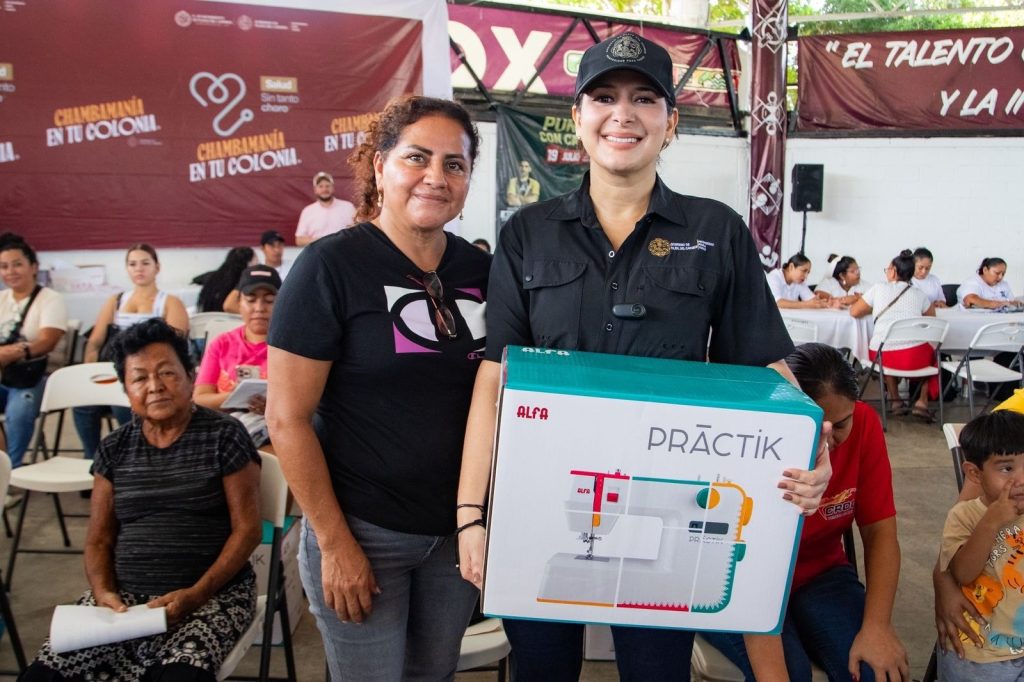 En el domo también se instalaron módulos de la Secretaría del Bienestar (SEBIEN) que, a través del programa Fábrica de Artes y Oficios (FARO) continuó con la entrega de máquinas de coser a mujeres playenses interesadas en capacitarse y fortalecer su economía familiar.