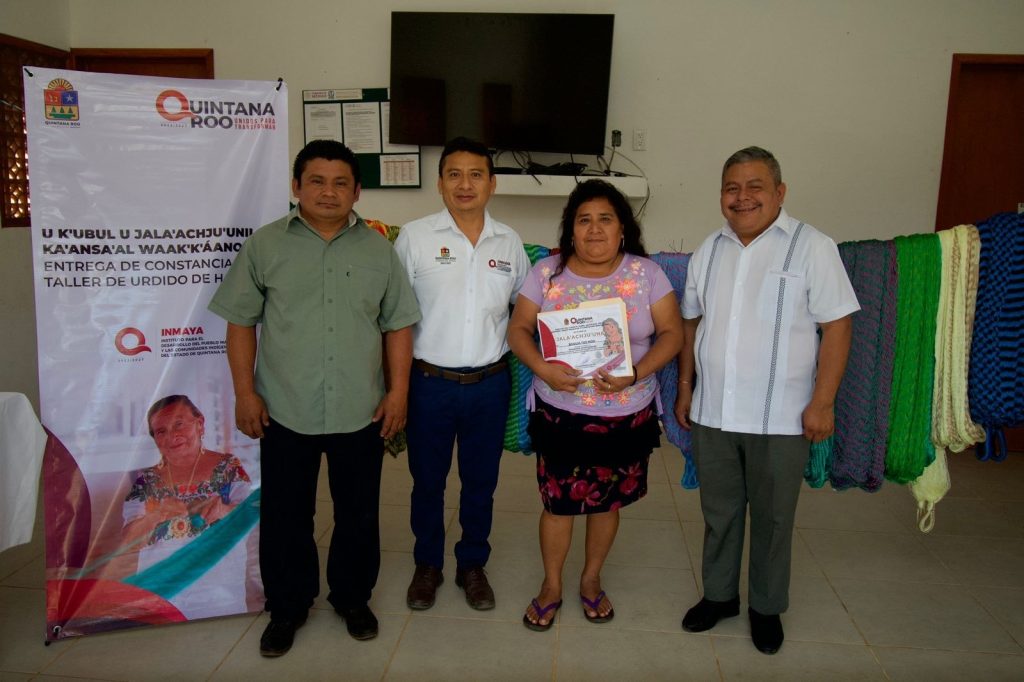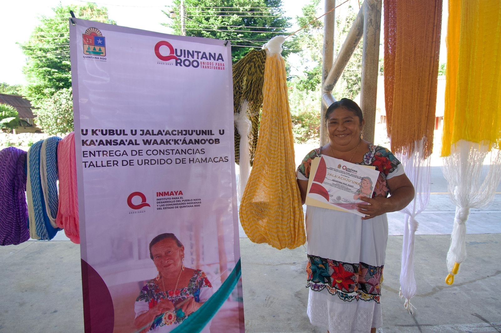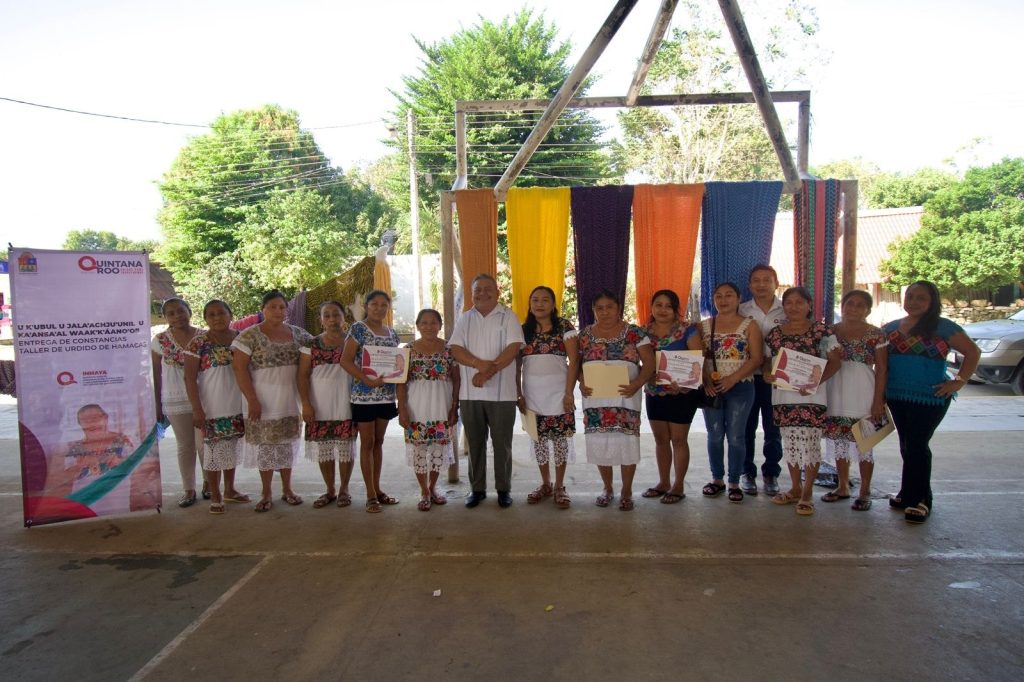 José María Morelos, Quintana Roo, 11 de diciembre de 2025.- Para fortalecer las capacidades productivas, la autonomía económica y cultural de las mujeres mayas el Instituto para el Desarrollo del Pueblo Maya y las Comunidades Indígenas del Estado de Quintana Roo (INMAYA) llevó a cabo el taller urdido de hamacas “Mujeres que tejen futuro” en beneficio de 44 mujeres.