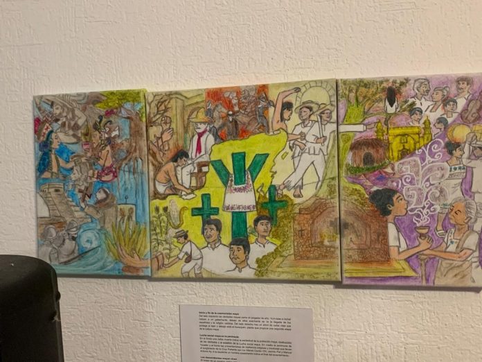 La joven de 22 años, originaria de Valladolid, Yucatán, y quien realizará a finales de este año un intercambio académico en Francia, invitó a los asistentes a conocer su exposición pictórica instalada temporalmente en la Alianza Francesa Kaan Kuun, donde a través de colores y lienzos representa los orígenes del pueblo maya junto con sus propios sueños.