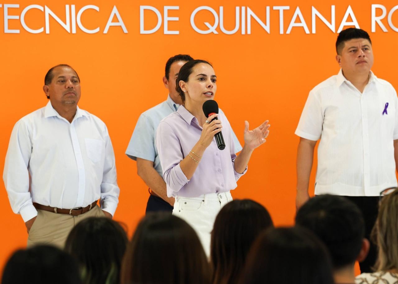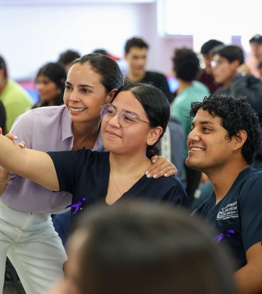 Cancún, Quintana Roo, 11 de marzo de 2026.- En el marco del Día Internacional de la Mujer, la Presidenta Municipal, Ana Paty Peralta, acercó la conferencia “Cuatro Voces, Cuatro Historias”, que realiza el Instituto Municipal Contra las Adicciones (IMCA), a más de 200 alumnos de la Universidad Politécnica de Quintana Roo (UPQROO), quienes conocieron testimonios de vida y superación de personas que en su momento cayeron en actitudes autodestructivas.
