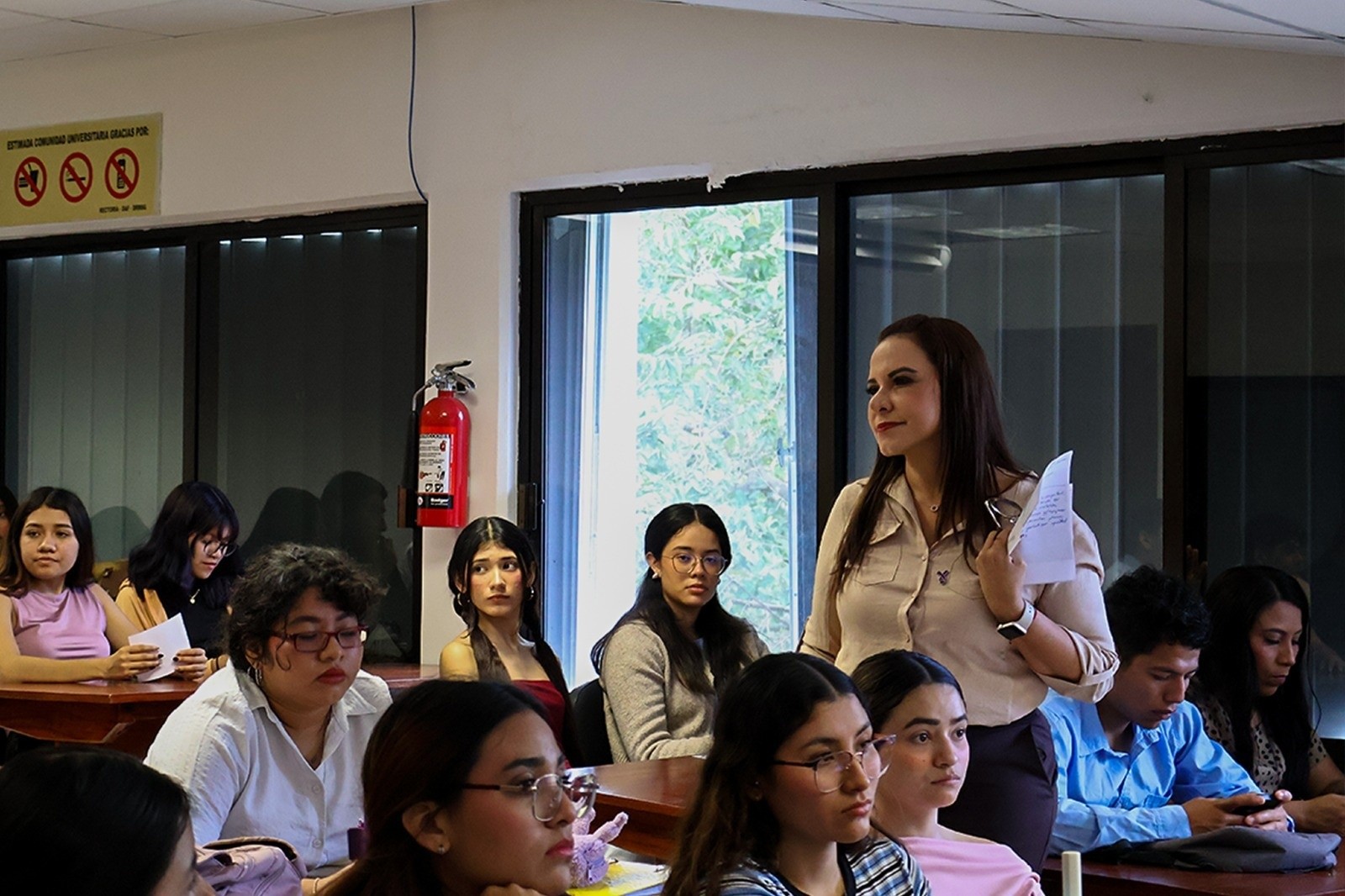 La actividad se realizó en la Sala de Juicios Orales, donde se abrió un espacio de diálogo y reflexión con la comunidad universitaria sobre los mecanismos de defensa de los derechos político-electorales de las mujeres y la relevancia de garantizar su participación plena, libre de violencia y discriminación.