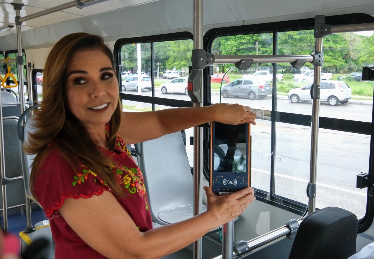 Junto con el director del IMOVEQROO, Rafael Hernández Kotasek, la gobernadora de Quintana Roo aseguró que el transporte público digno será una realidad; siguen las pruebas, pero será una realidad a inicios de año.