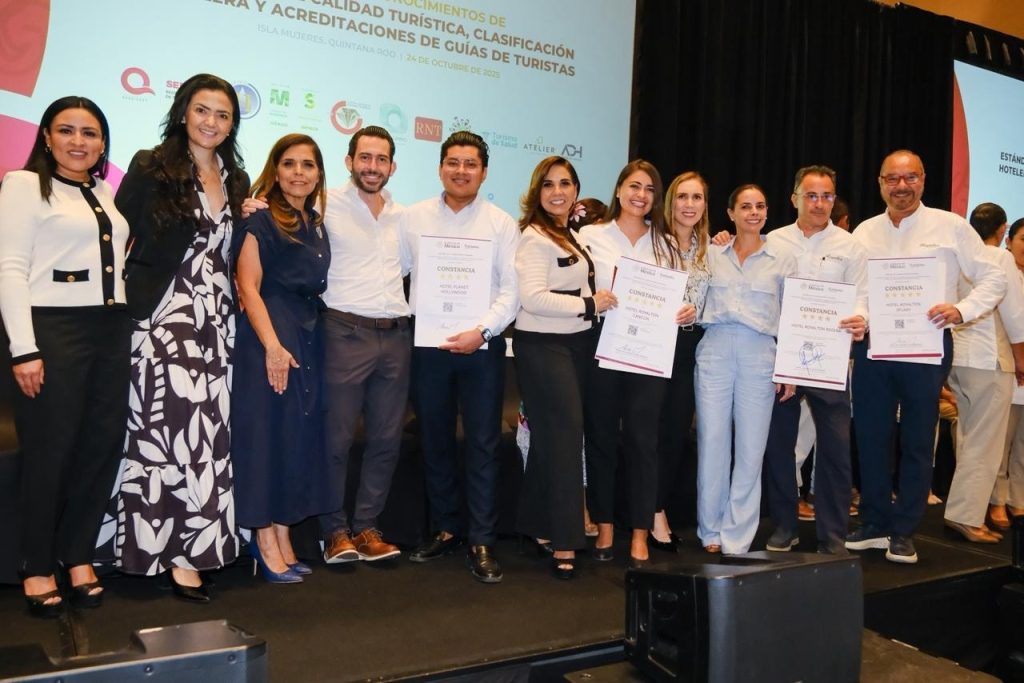 A través de la Secretaría de Turismo (SEDETUR), el Gobierno del Estado entregó Reconocimientos de Estándares de Calidad Turística, Clasificación Hotelera y Acreditaciones de Guías de Turistas, un acto que busca distinguir el esfuerzo, compromiso y excelencia de los prestadores de servicios turísticos del Caribe Mexicano.