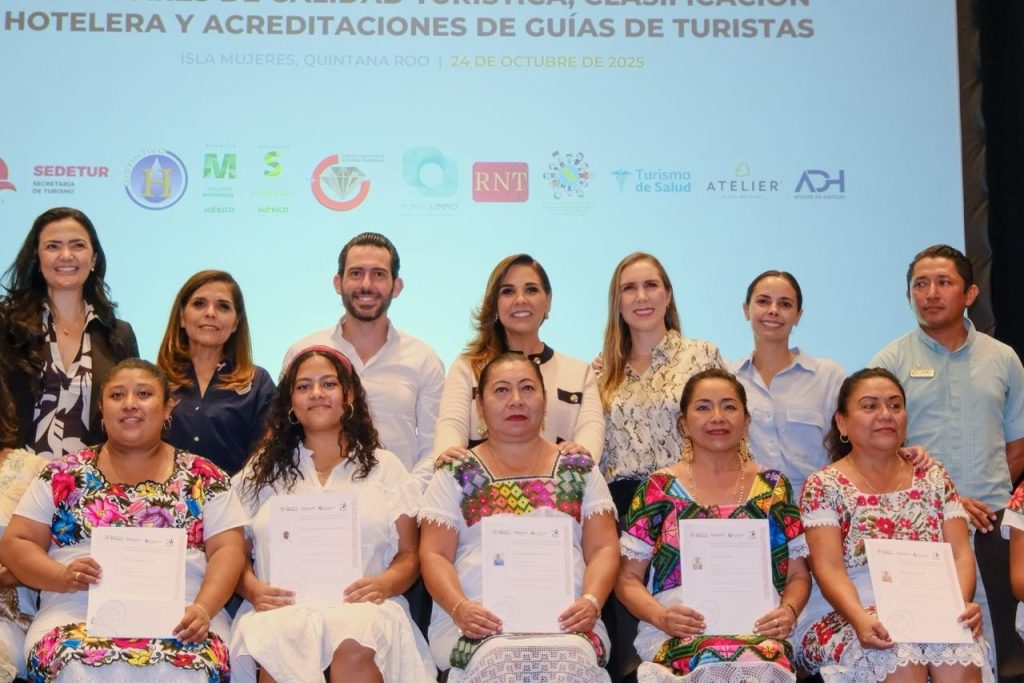 Informó que se logró incrementar el 31.5% en certificaciones entre julio de 2024 y septiembre de 2025. Hoy Quintana Roo ocupa el primer lugar nacional en guías certificados y el primer lugar nacional en distintivos de Manejo Higiénico de Alimentos y Bebidas.