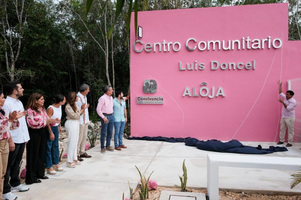 Cancún, Quintana Roo, 13 de abril de 2026.- Para fortalecer las acciones en favor de la comunidad, en la construcción de paz, la gobernadora Mara Lezama Espinosa y directivos de la asociación civil Entorno y Convivencia inauguraron el Centro Comunitario “Luis Doncel”, en el fraccionamiento Aloja, en la Región 246 de Cancún.