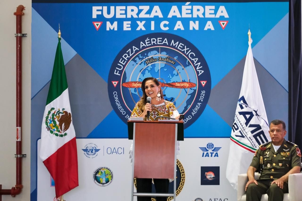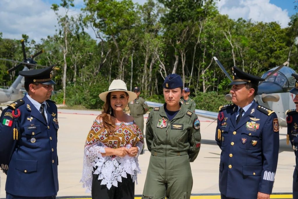 Tulum, Quintana Roo, 23 de abril de 2026.- La gobernadora Mara Lezama Espinosa y el comandante de la Fuerza Aérea Mexicana, General de División PA de EM Román Carmona Landa, encabezaron la inauguración del “Tulum Air Show 2026”, un espectáculo sin precedentes que combina exhibiciones aéreas, encuentros de negocios e innovación tecnológica, desde el Aeropuerto Internacional “Felipe Carrillo Puerto” de Tulum.