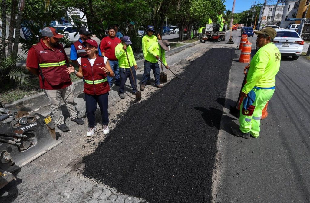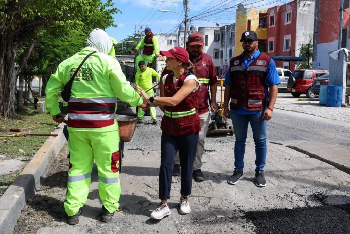 Cancún, Quintana Roo, 13 de octubre de 2025.- La Presidenta Municipal, Ana Paty Peralta, realizó un recorrido de supervisión al mantenimiento vial a la Avenida 20 de Noviembre, en las inmediaciones de la Supermanzana 77, sobre la, consistentes en bacheo de la vialidad para mejorar el tráfico vehicular e incrementar la seguridad de los ciudadanos, gracias a un proceso eficiente y duradero.