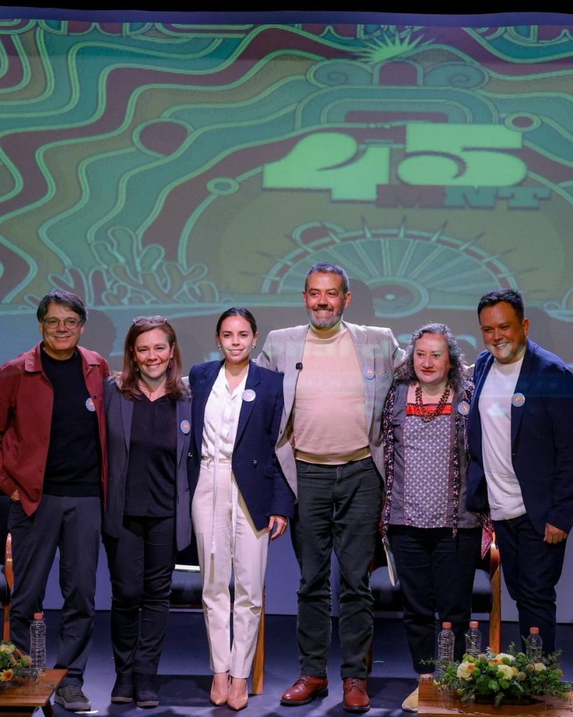 En la conferencia estuvieron presentes también el coordinador nacional de Teatro, Luis Mario Moncada Gil; el subdirector de enlace con los estados, Pablo Edén Tejeda; y la representante de la dirección artística de la 45ª MNT, Verónica Maldonado Carrasco.