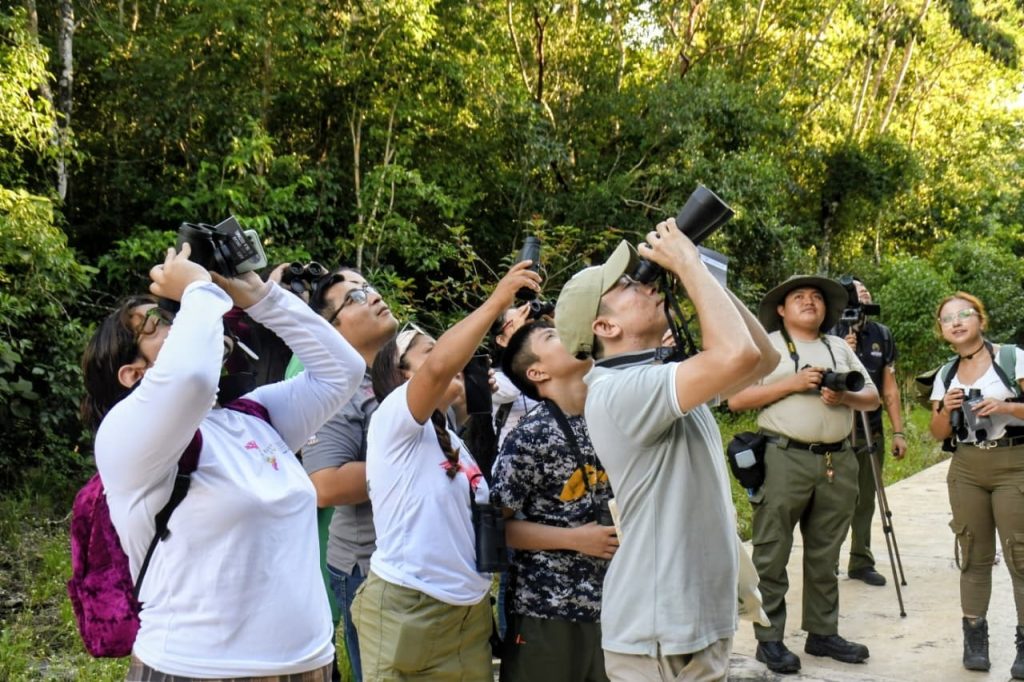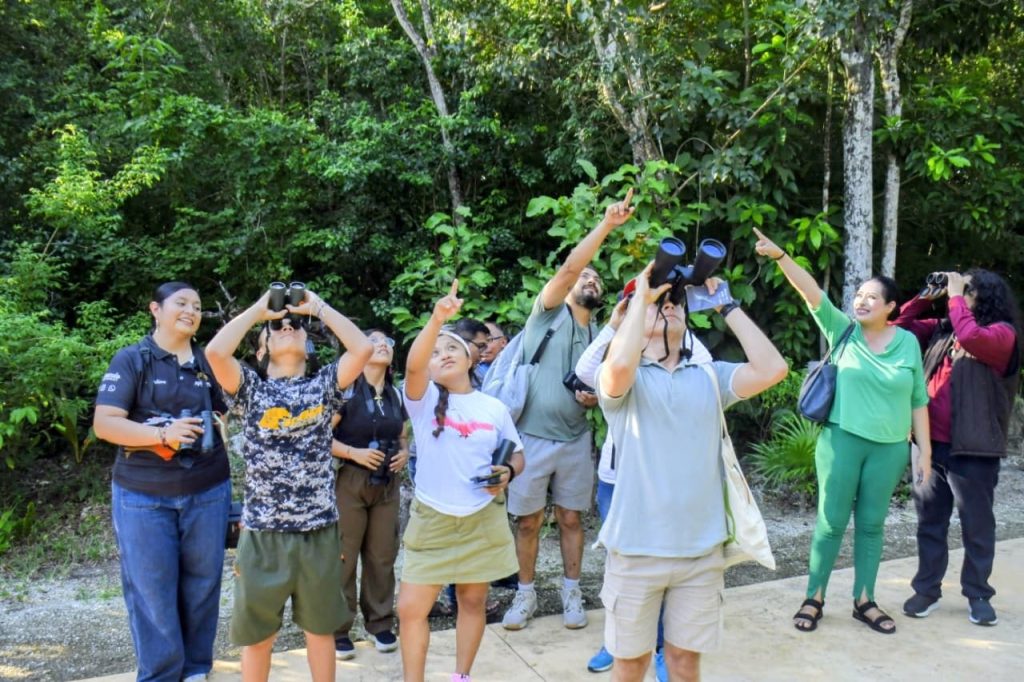 Durante la tarde, familias completas participaron en una caminata guiada para conocer las especies que habitan en el parque y escuchar las leyendas mayas del colibrí, el pájaro carpintero, el tordo ojos rojos y el zopilote, relatos que reflejan la conexión espiritual del pueblo maya con la naturaleza y los mensajes de respeto, transformación y equilibrio que transmiten estas aves.