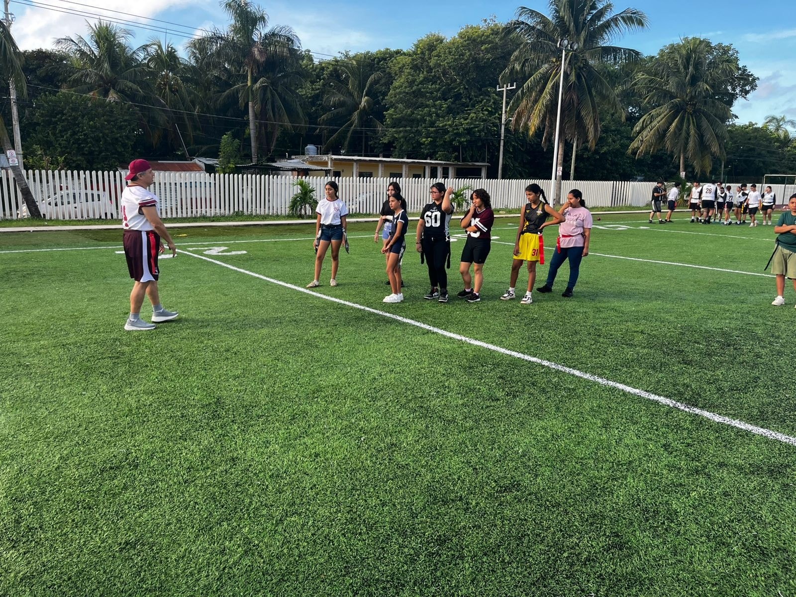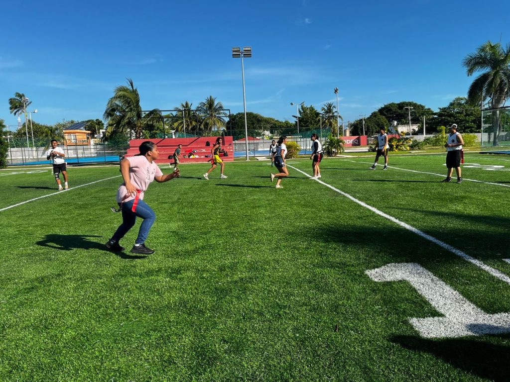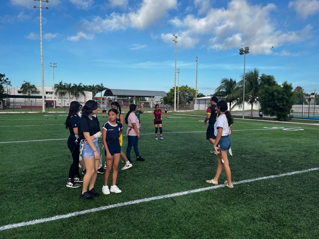Chetumal, Quintana Roo, 18 de diciembre de 2025.- Como parte de las acciones para seguir promoviendo la práctica del deporte entre la comunidad estudiantil de Quintana Roo, la Comisión del Deporte de Quintana Roo (CODEQ), presidida por Jacobo Arzate Hop, en un trabajo en conjunto con el profesor Julio Salas, promotor de ligas de Tocho Bandera, se realizaron unas exhibiciones de este deporte a estudiantes de las Escuelas Secundarias “Justo Sierra Méndez” y “Adolfo López Mateos”, esto con el objetivo de implementar la Liga Inter-Secundarias de Tocho Bandera en Chetumal.
