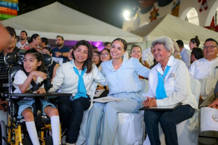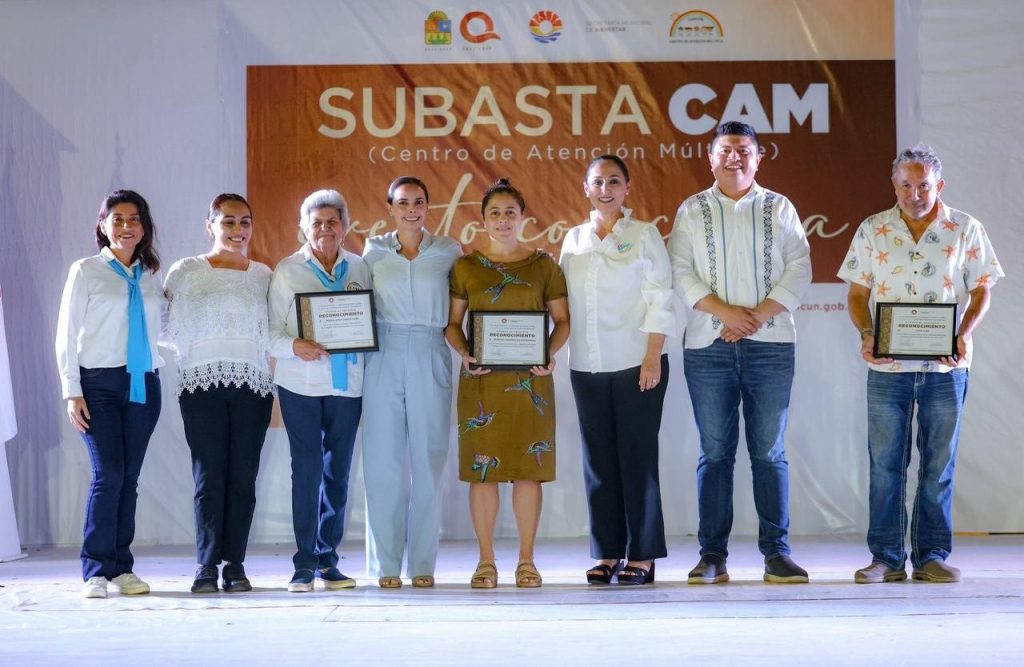 Cancún, Quintana Roo, 4 de diciembre de 2025.- Con el propósito de fomentar una ciudad más justa, humana y solidaria donde las niñas y los niños tengan la oportunidad de crecer, aprender y soñar; así como recaudar fondos en beneficio de los Centros de Atención Múltiple (CAM), la Presidenta Municipal, Ana Paty Peralta, encabezó la “Subasta CAM” en la Plaza de la Reforma, con la que se logró superar la cifra de 216 mil pesos.