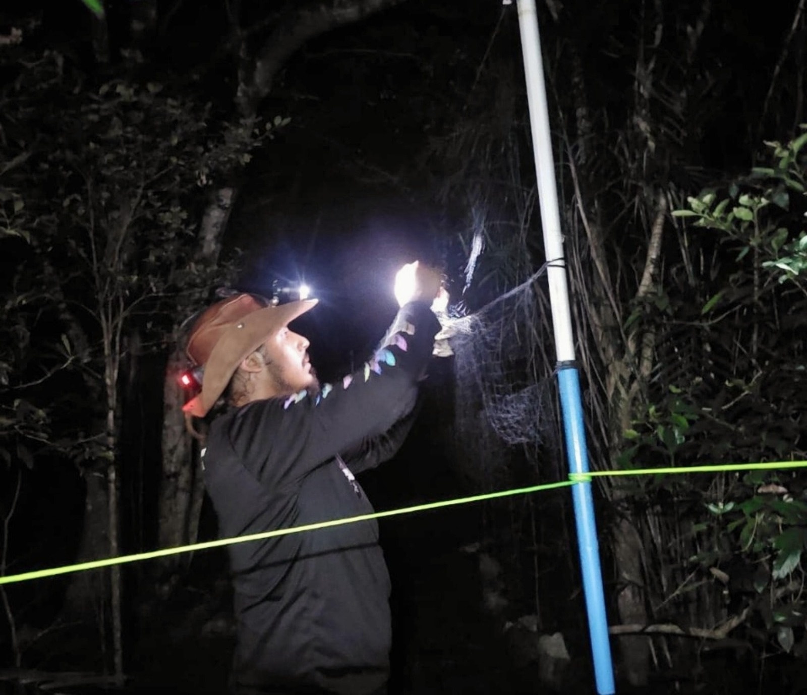 Durante su estancia en el CCEA y con los permisos de captura otorgados a la FPMC, el especialista instaló trampas de niebla para la captura temporal de ejemplares, liberándolos posteriormente en condiciones seguras y garantizando su bienestar.