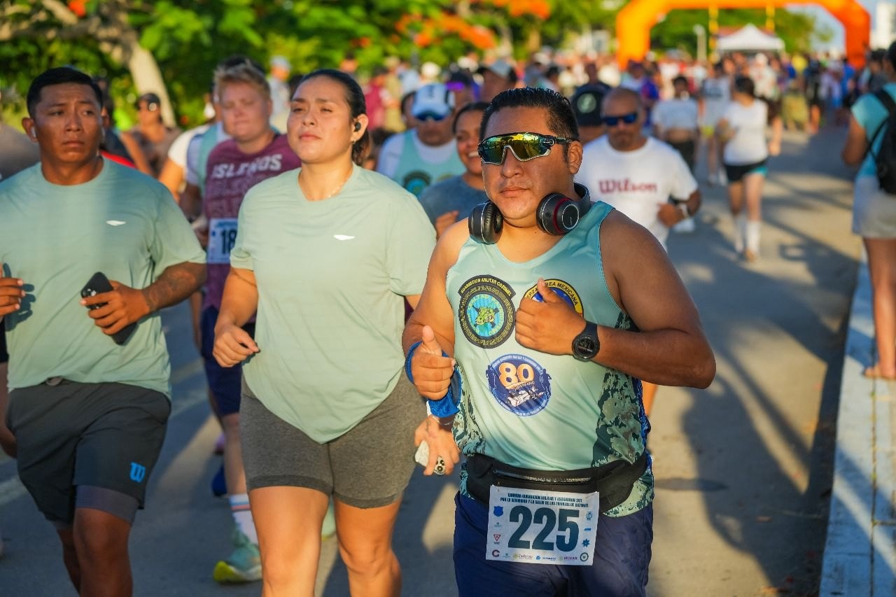 Cozumel, Quintana Roo, 10 de agosto de 2025. - Este domingo por la mañana más de mil 200 personas se dieron cita en la antigua pista de la Base Aérea Militar para participar en la carrera "Guarnición Militar y Escuadrón 201: Por la seguridad y salud de Cozumel", una actividad recreativa que reunió a familias completas en un ambiente de convivencia, deporte y valores cívicos.