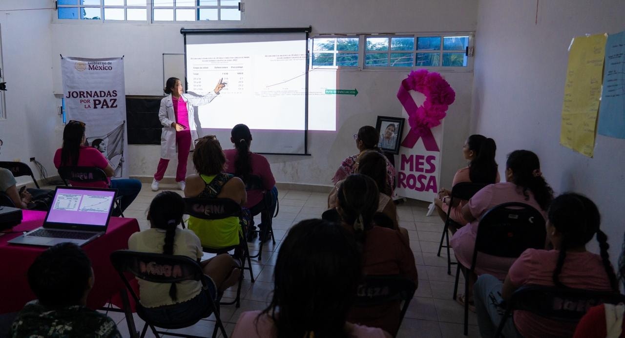 Mayin Mejía Ku, comentó que ésta actividad va dirigida a mujeres, alumnas y alumnos de los talleres que se imparten en COMUMU y a ciudadanía en general, con el propósito de fomentar la prevención, detección oportuna y concientización sobre el cáncer de mama, dentro del marco del Mes Rosa.