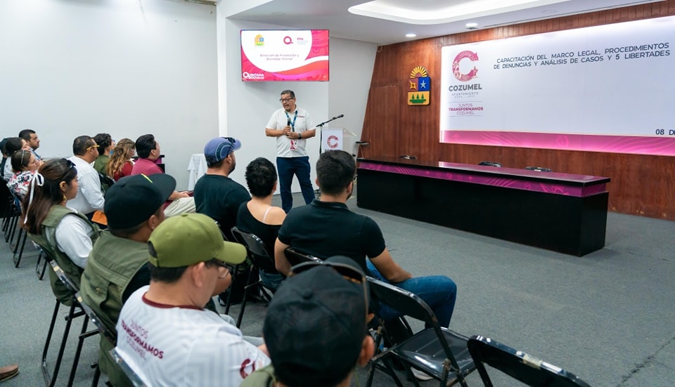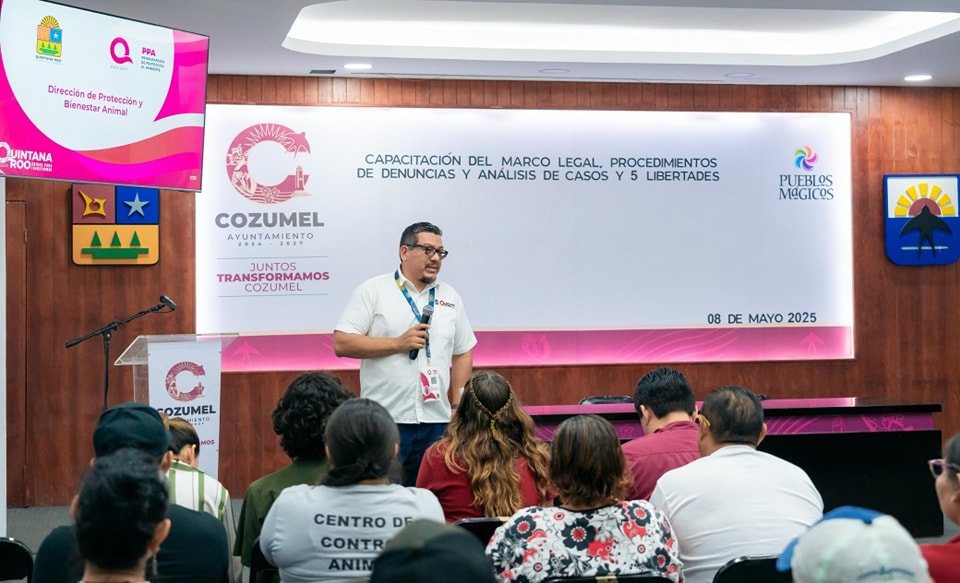 Cozumel, Quintana Roo, 10 de mayo de 2025.- Con el objetivo de salvaguardar el bienestar y el respeto hacia los animales, especialmente perros y gatos, el gobierno municipal de Cozumel a través de la subdirección de Ecología, llevó a cabo una importante capacitación dirigida a rescatistas, personal veterinario y colaboradores de esa área municipal.