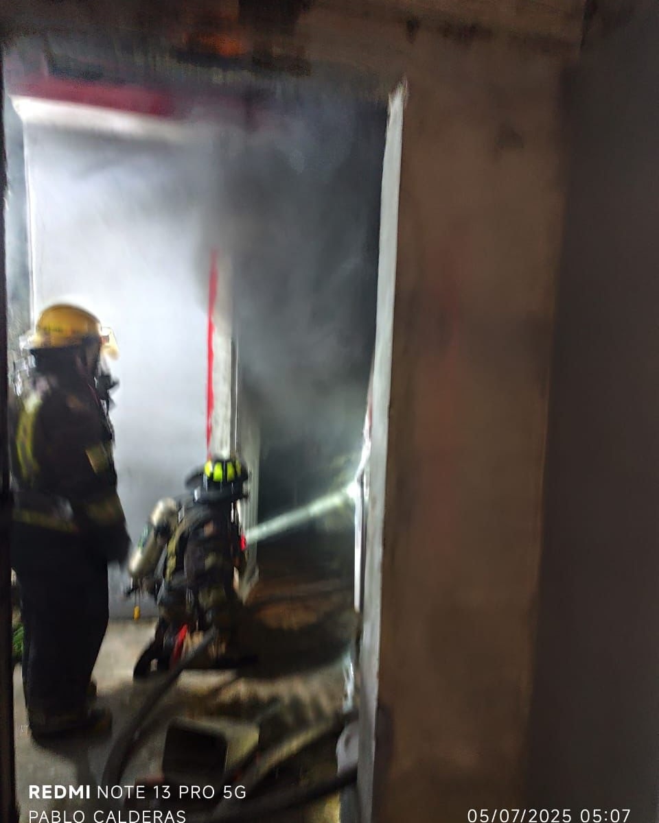 Una vez dentro del domicilio, se procedió a la rápida extinción del incendio, que ya había consumido parte de la recámara principal.
