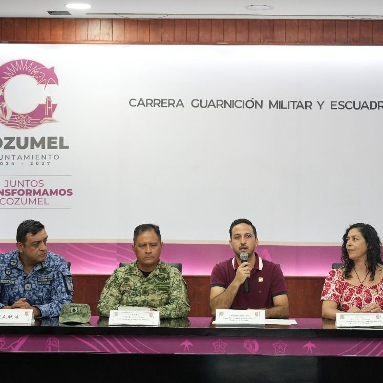 Cozumel, Quintana Roo, 28 de julio de 2025. – Como parte del compromiso con la salud y bienestar de las familias cozumeleñas, el gobierno municipal que preside José Luis Chacón Méndez, en coordinación con la Confederación Patronal de la República Mexicana (Coparmex) y la Guarnición Militar, presentó la carrera de convivencia “Por la seguridad y la salud de las familias de Cozumel”, la cual se realizará el próximo 10 de agosto en las instalaciones de la Base Aérea Militar (B.A.M.) con recorridos de 3 y 5 kilómetros.