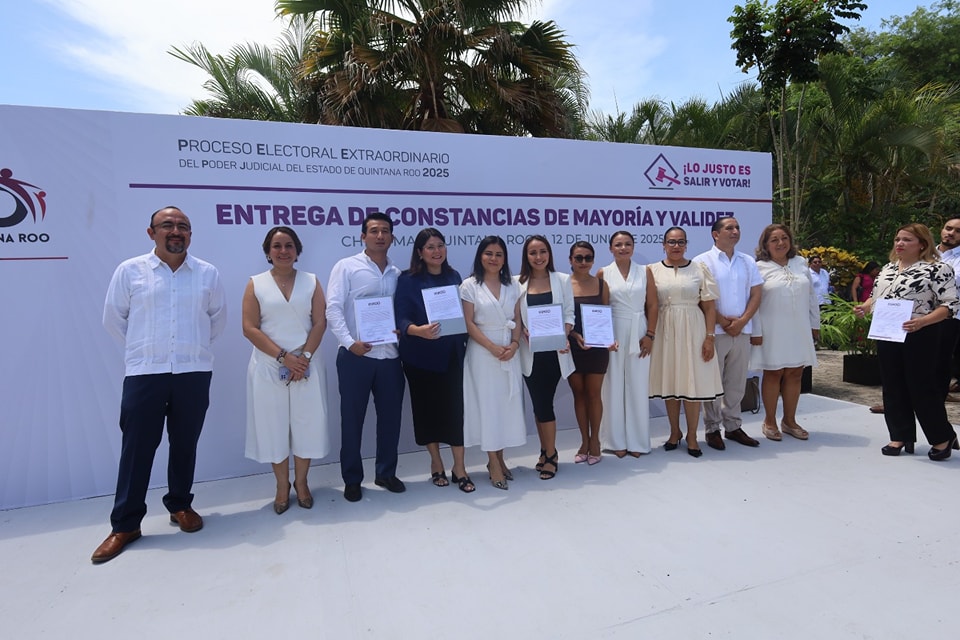 Chetumal, Quintana Roo, 12 de junio de 2025. – Integrantes del Consejo General para la elección de personas juzgadoras del Instituto Electoral de Quintana Roo, en sesión permanente declararon la validez de las elecciones de magistraturas del Tribunal Superior de Justicia, magistraturas del Tribunal de Disciplina Judicial, así como juezas y jueces integrantes del Poder Judicial y, se aprobó la asignación de las candidaturas electas en favor del listado de candidaturas postuladas por el Poder Ejecutivo, en las elecciones de magistraturas del Tribunal Superior de Justicia, magistraturas del Tribunal de Disciplina Judicial, así como juezas y jueces integrantes del Poder Judicial en el contexto del Proceso Electoral Extraordinario del Poder Judicial del Estado de Quintana Roo 2025.