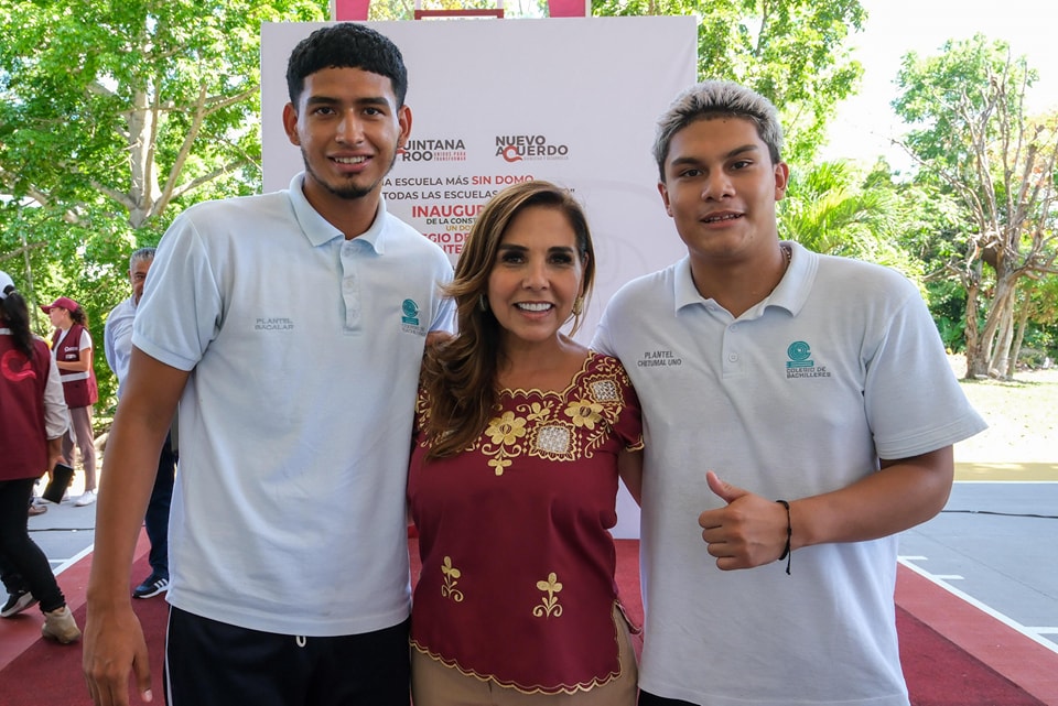Bacalar, Quintana Roo, 9 de junio de 2025.- Alumnas y alumnos del Colegio de Bachilleres Plantel Bacalar “Serapio Flota Maas” solicitaron el 31 de marzo pasado la construcción de un domo a la gobernadora Mara Lezama Espinosa. Hoy la titular del Ejecutivo llegó al plantel para cumplir esa petición: el domo es una realidad, luego de 8 años sin contar con un espacio digno, seguro y funcional para actividades deportivas, culturales y recreativas.